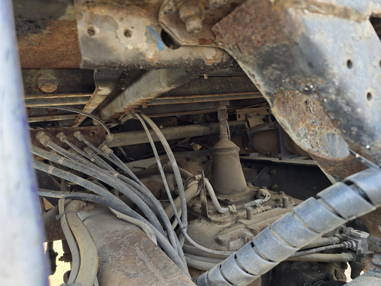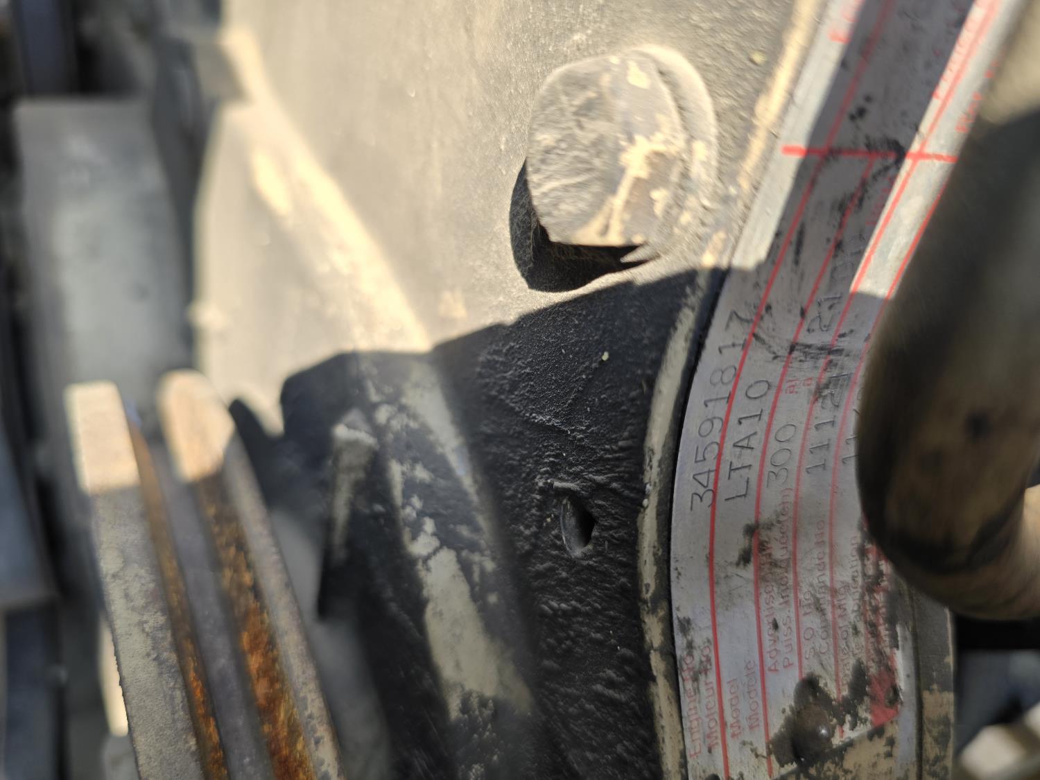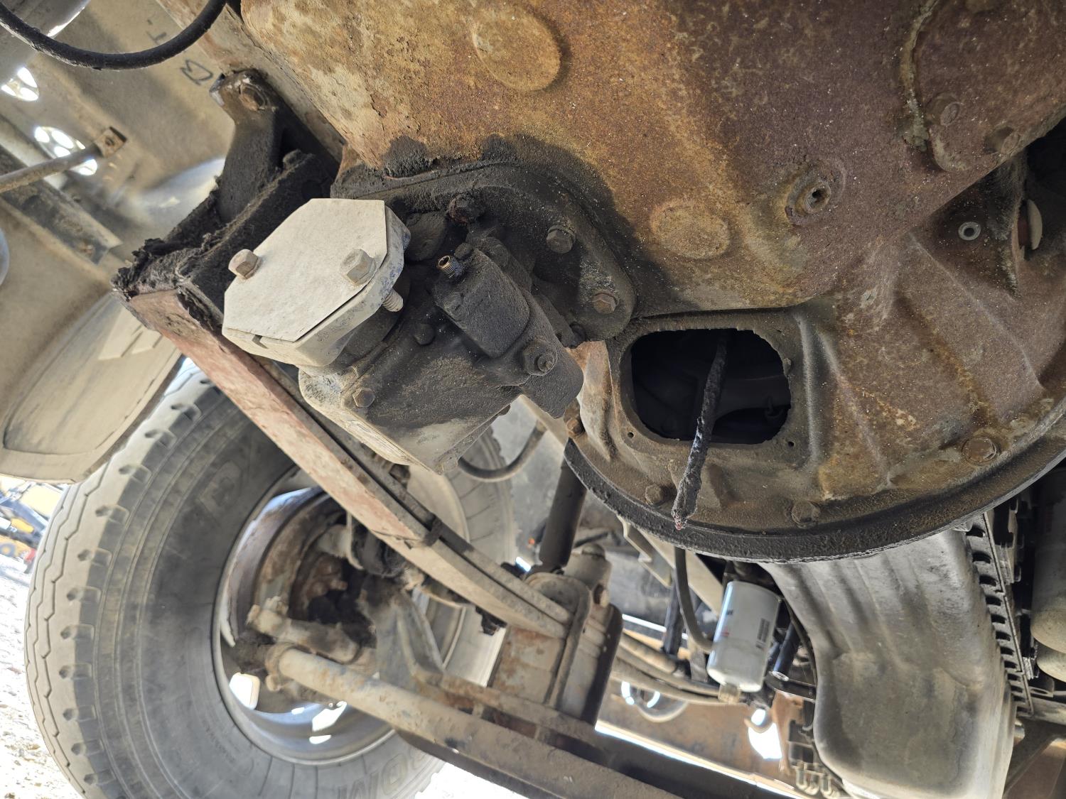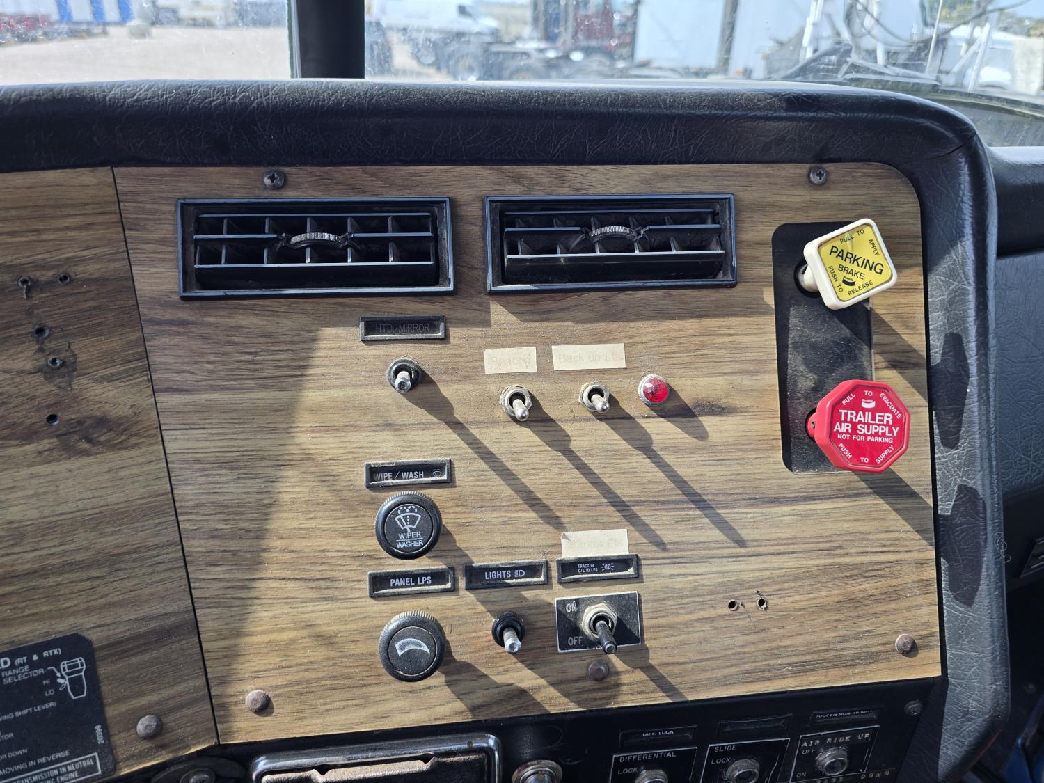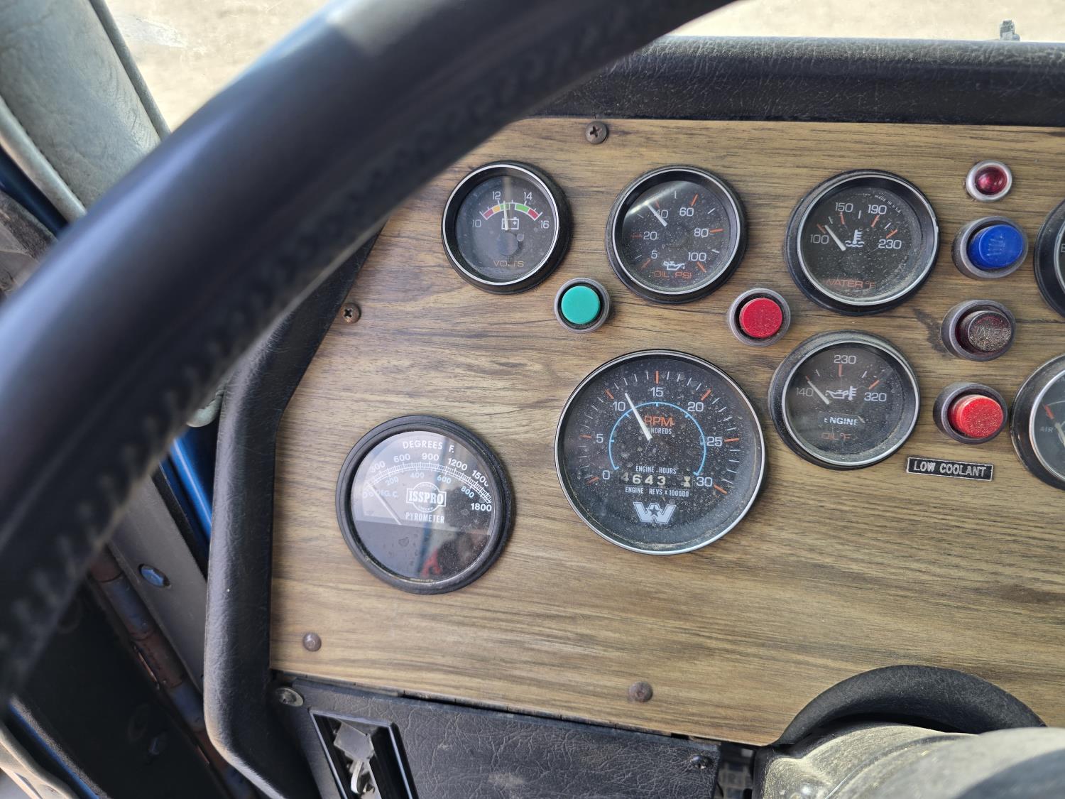 Cummins LTA10 10.0 L 6 cylinder engine, engine block heater, Eaton Fuller RTX 11609B 9 speed manual transmission, A/C, air ride seats, stereo, Neway air ride suspension, 12,000 lb front axle, 38,000 lb rear axles, diff lock, 170 inch WB, all aluminum wheels, 11R24.5 tires
