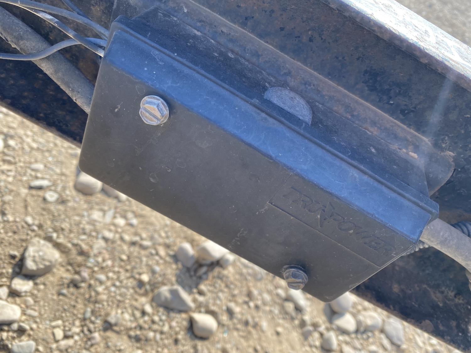 79 inch wide deck, wood deck, electric brakes, spring suspension, ball hitch, tool / storage box, stake pockets, 5080 lb axles, 225/75R15 tires