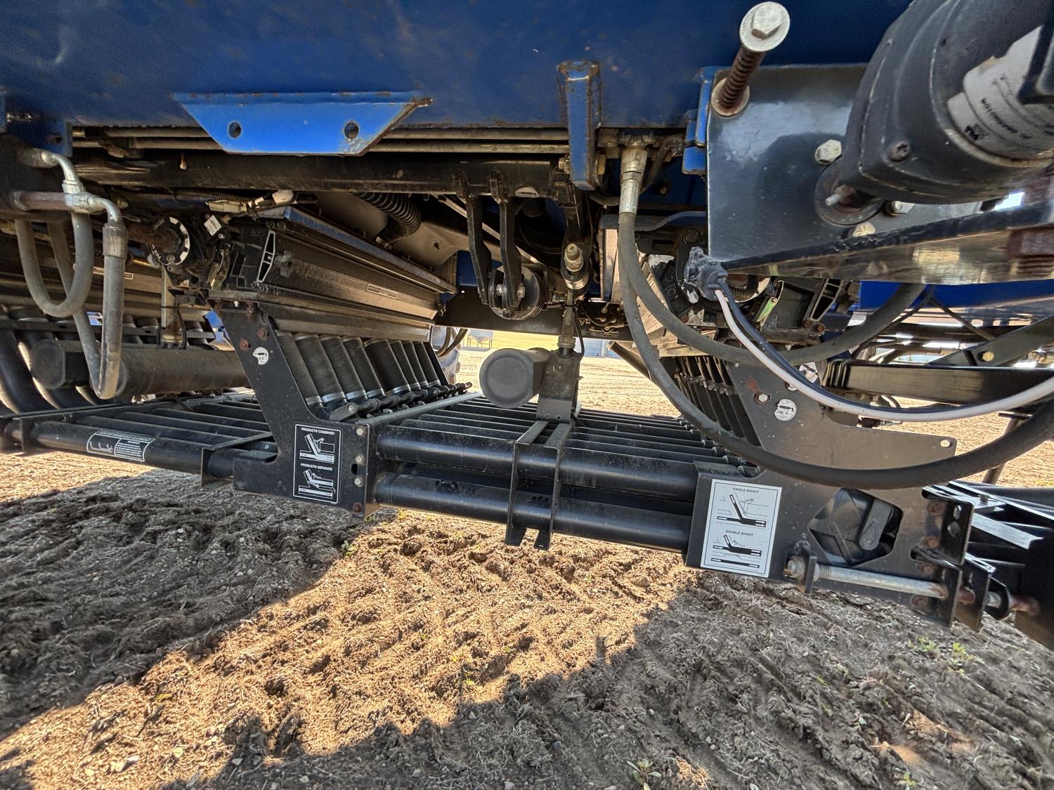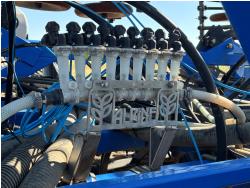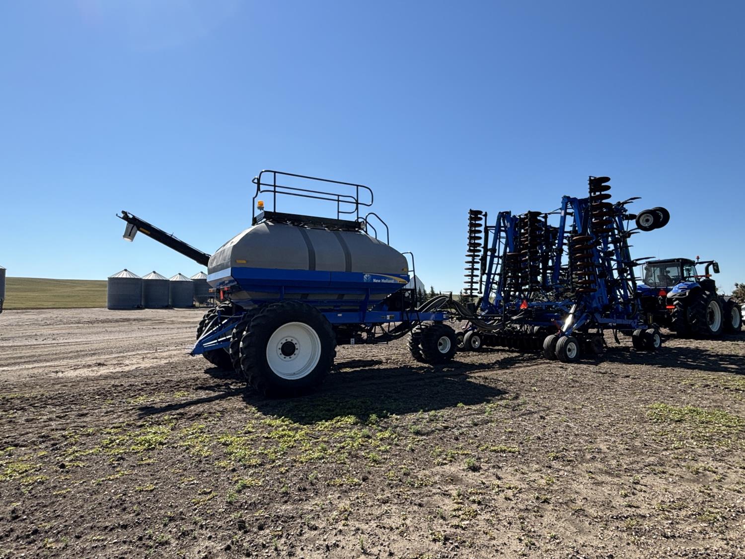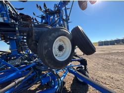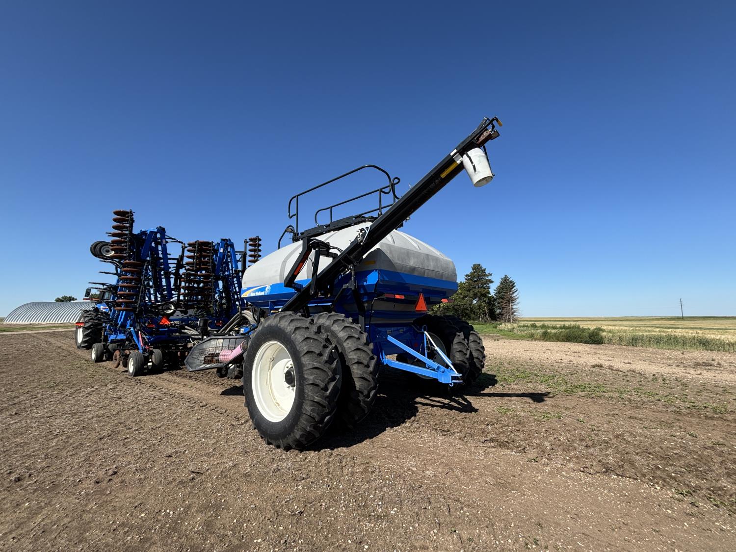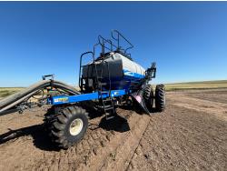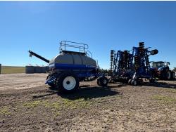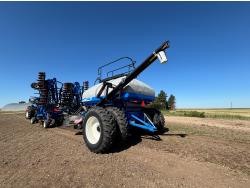 10 inch spacing, single shoot openers, 3 inch steel packers, liquid fertilizer kit, Alpine inoculant injection kit, Air Cart: 3 compartments, loading conveyor, double fan, variable rate metering, 3 tank cameras, New Holland IntelliVision IV display, dual 22.5X16.1 front tires, dual 18.4-38 rear tires
