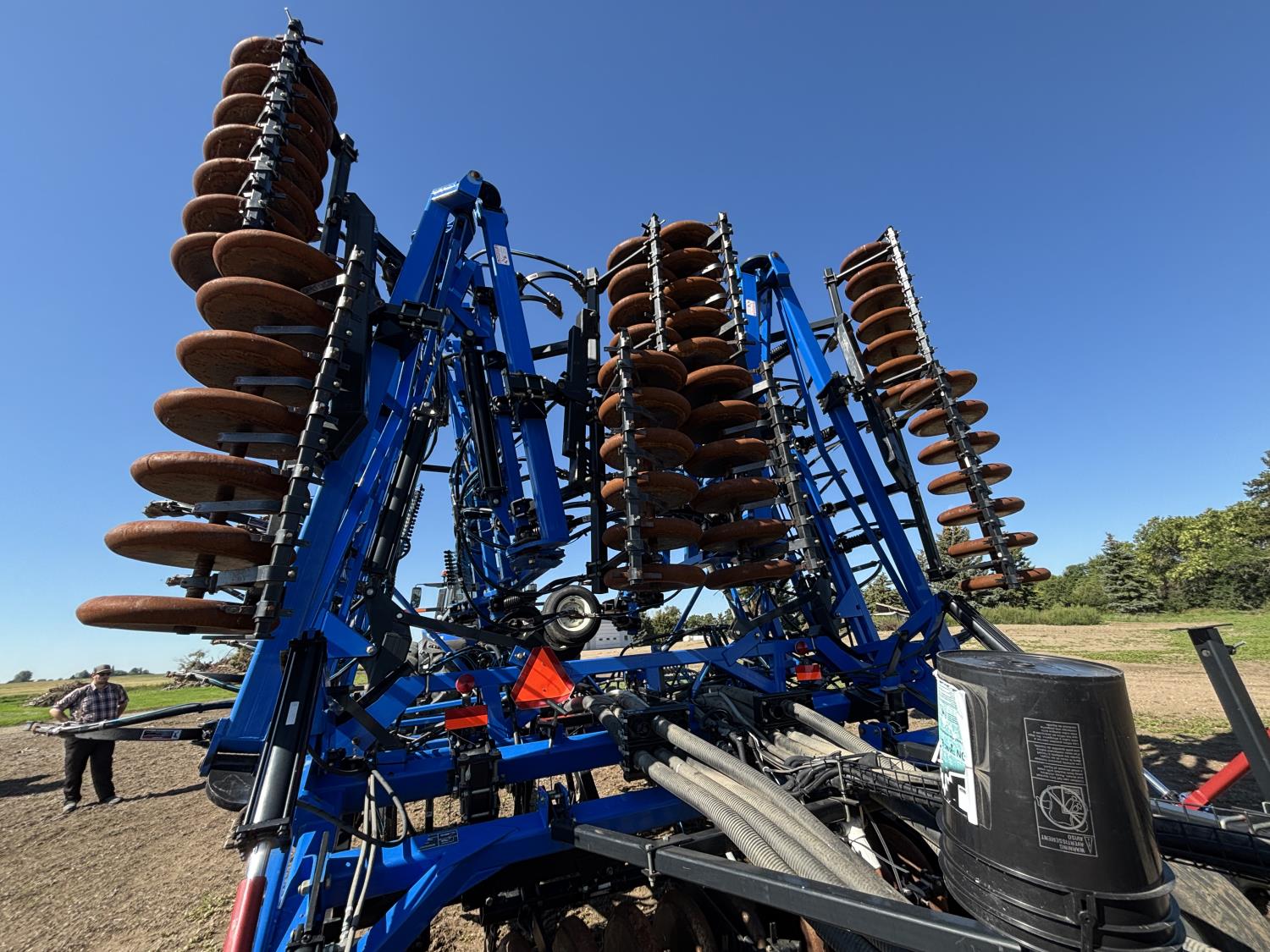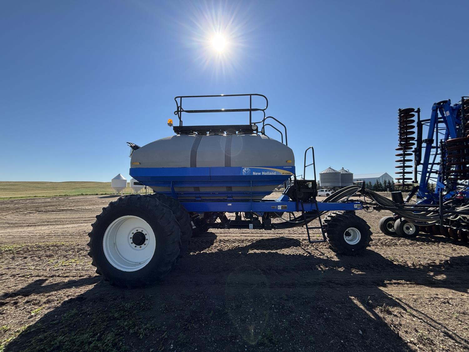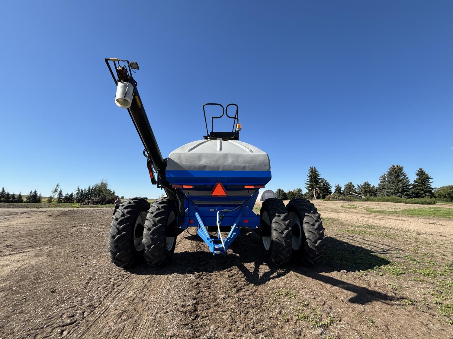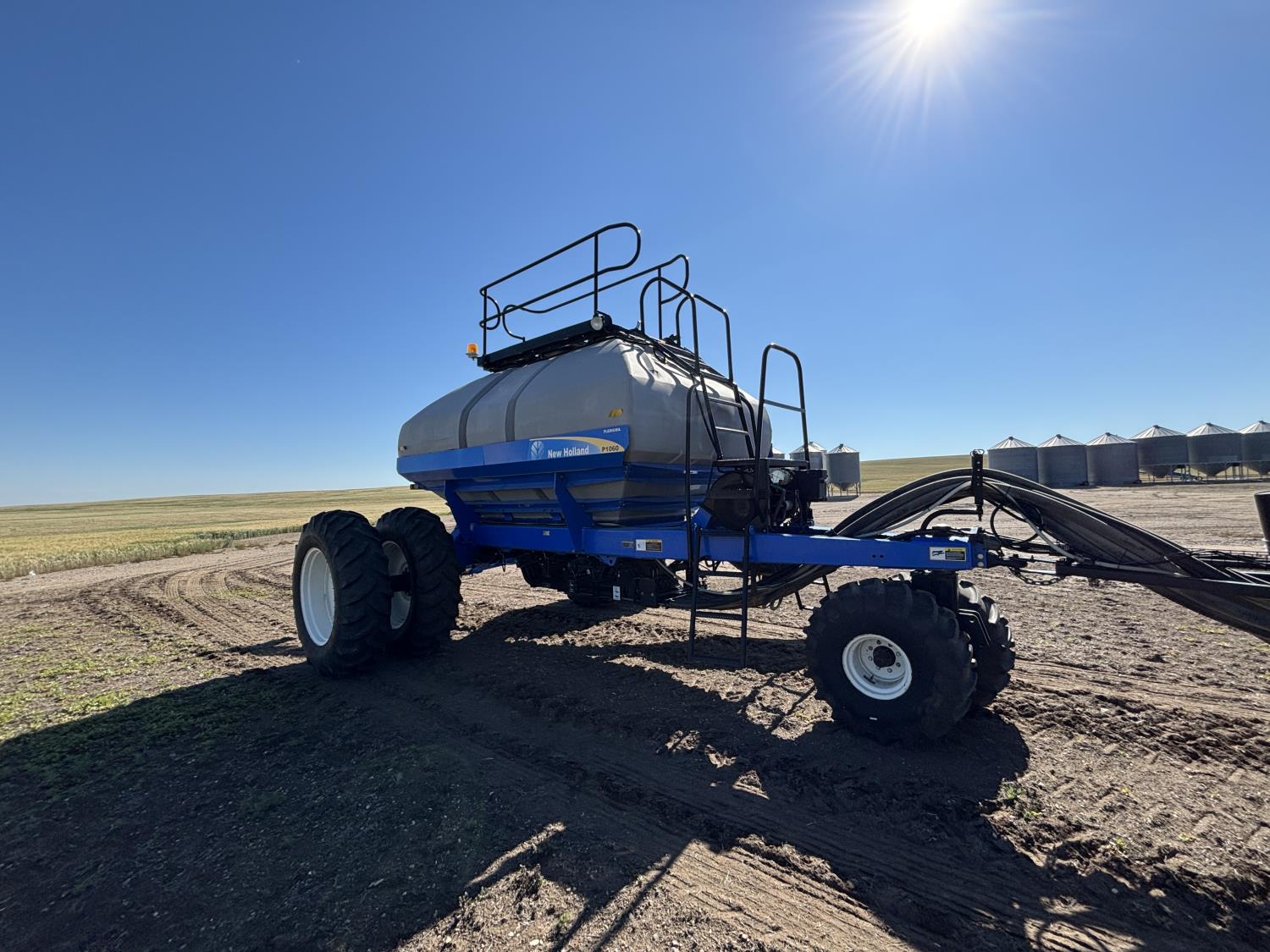 10 inch spacing, single shoot openers, 3 inch steel packers, liquid fertilizer kit, Alpine inoculant injection kit, Air Cart: 3 compartments, loading conveyor, double fan, variable rate metering, 3 tank cameras, New Holland IntelliVision IV display, dual 22.5X16.1 front tires, dual 18.4-38 rear tires