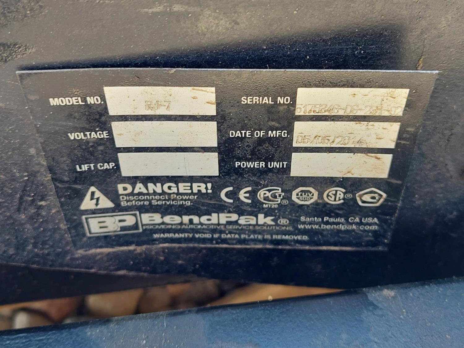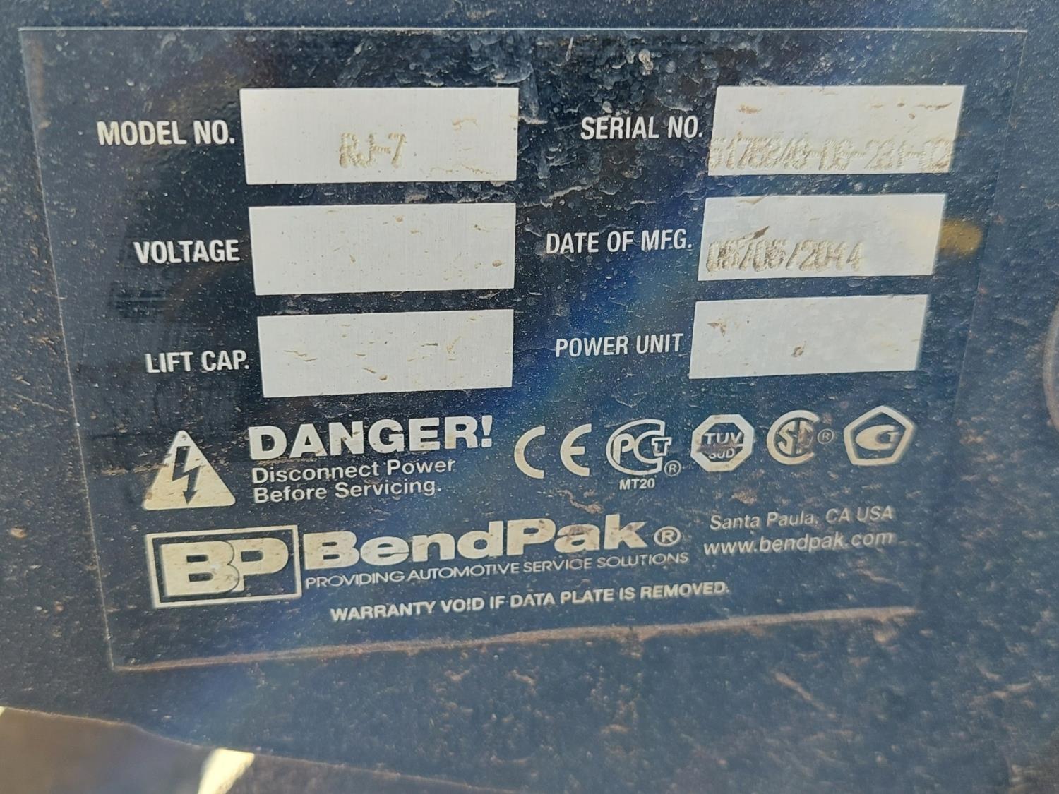 14,000 lb lift capacity, 2.5HP, 230V, single phase SMC motor, 20 inch W x 230 inch L platform, (2) 2014 BendPak RJ-7 bridge jacks