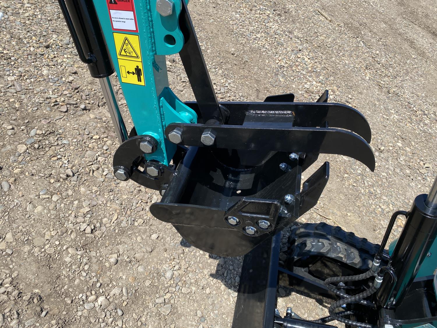 Open station, Zonsen 17Hp gas engine, 17 inch dig bucket, manual coupler, manual thumb, 2 Ft 4 inch stick, aux hydraulics, 37 inch backfill blade, 7 inch rubber tracks