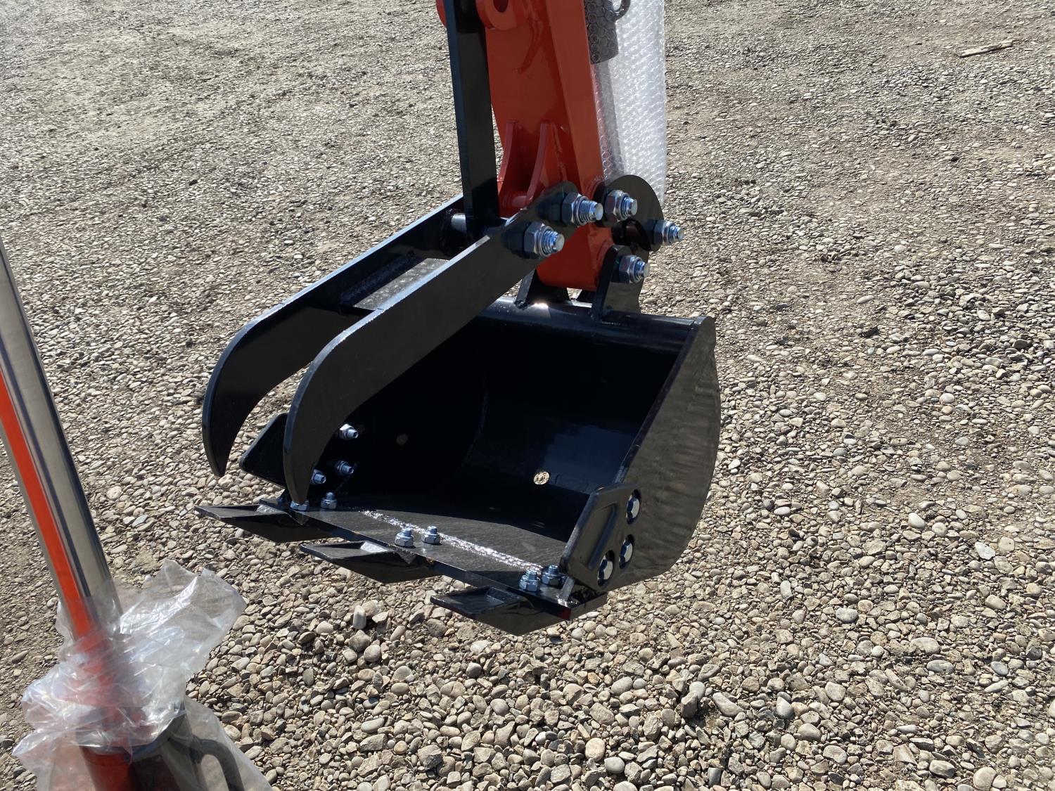 Open station, Kubota D722 3 cylinder diesel engine, 17 inch dig bucket, manual thumb, 2 Ft 10 inch stick, swing boom, aux hydraulics, 43 inch backfill blade, 7 inch rubber tracks