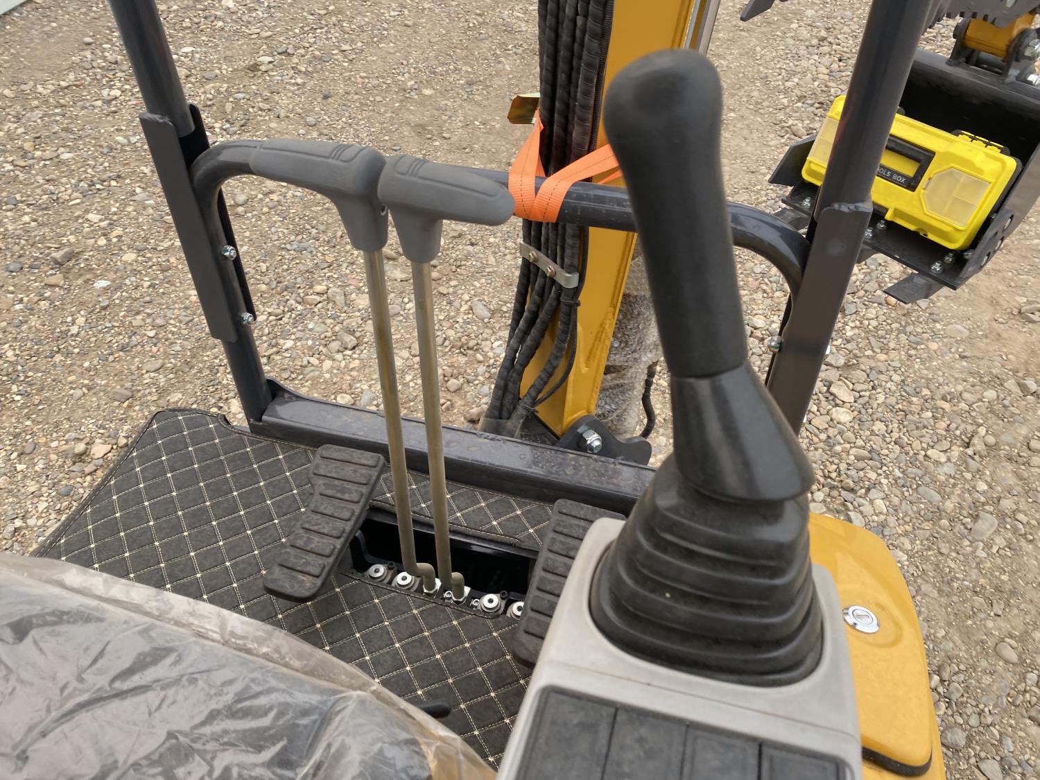 Open station, Yanmar diesel engine, 17 inch dig bucket, hydraulic thumb, 2 Ft 3 inch stick, swing boom, 43 inch backfill blade, auxiliary hydraulics, 7 inch rubber tracks