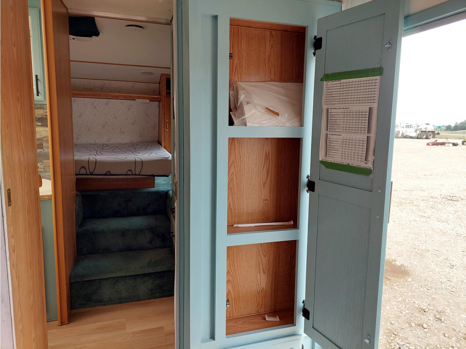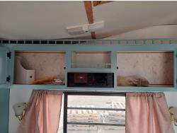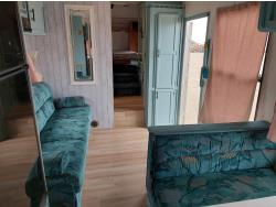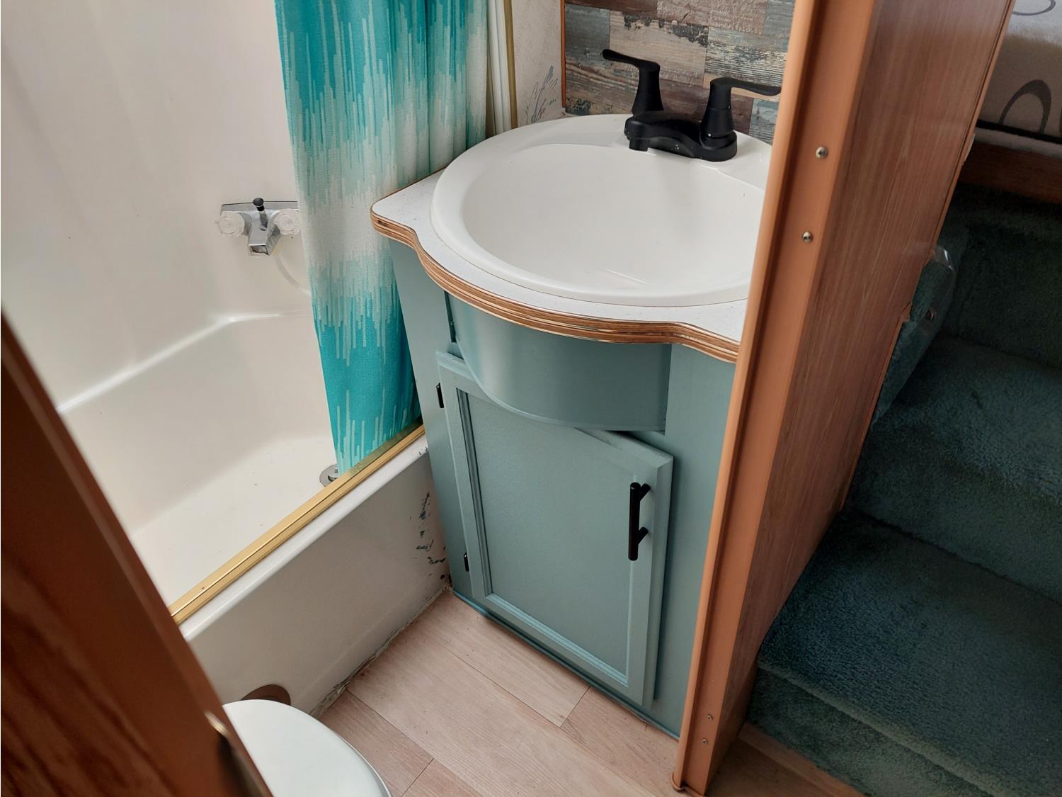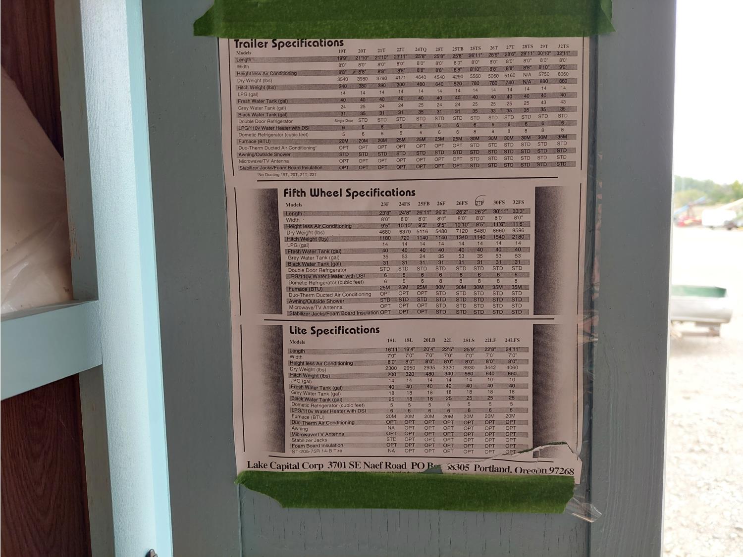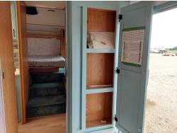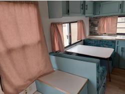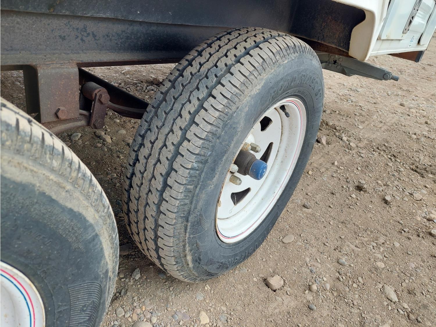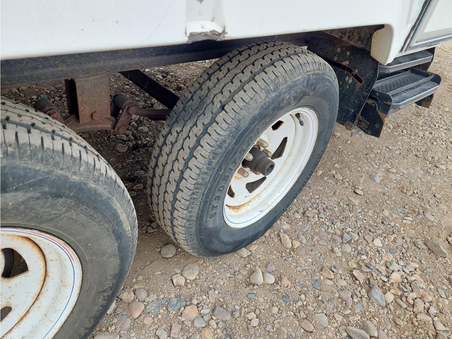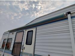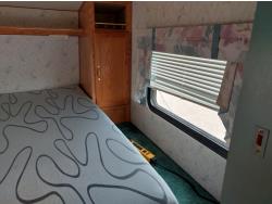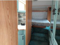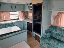 Sleeps 6, stove, fridge, microwave, full bath, master bedroom, A/C, outdoor shower, manual awning, spring suspension, electric brakes, rear scissor jacks, 205/75R15 tires