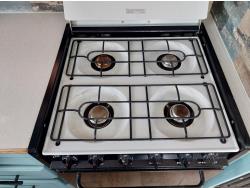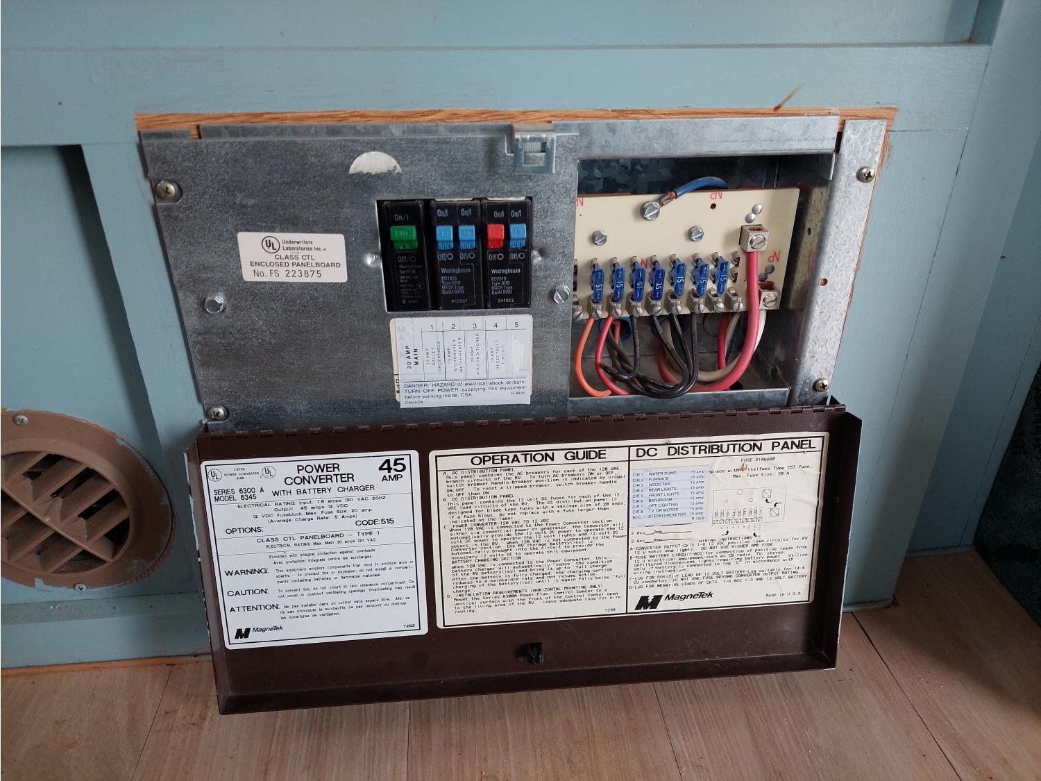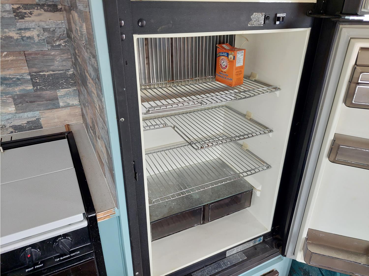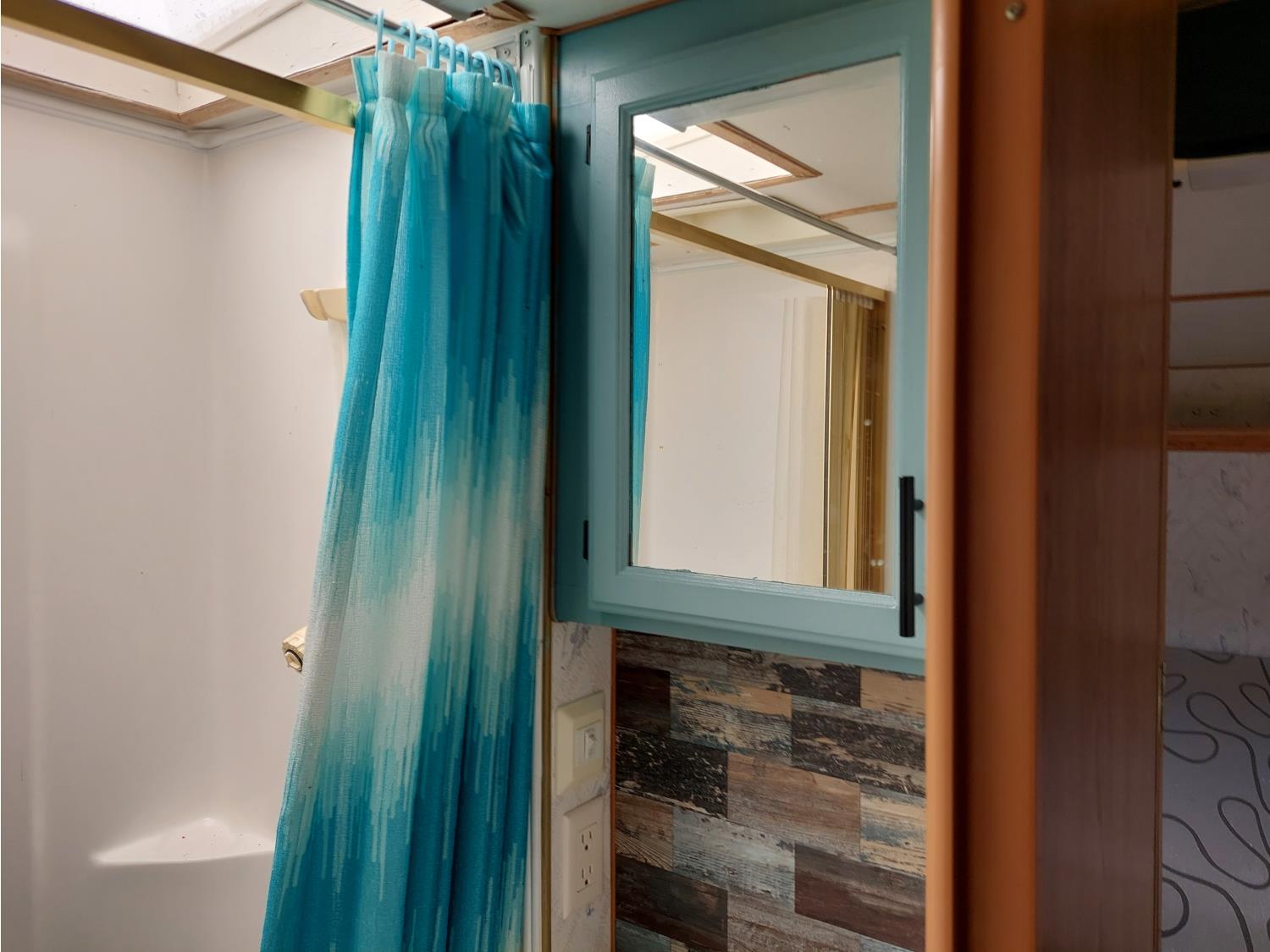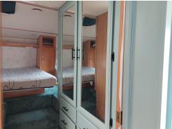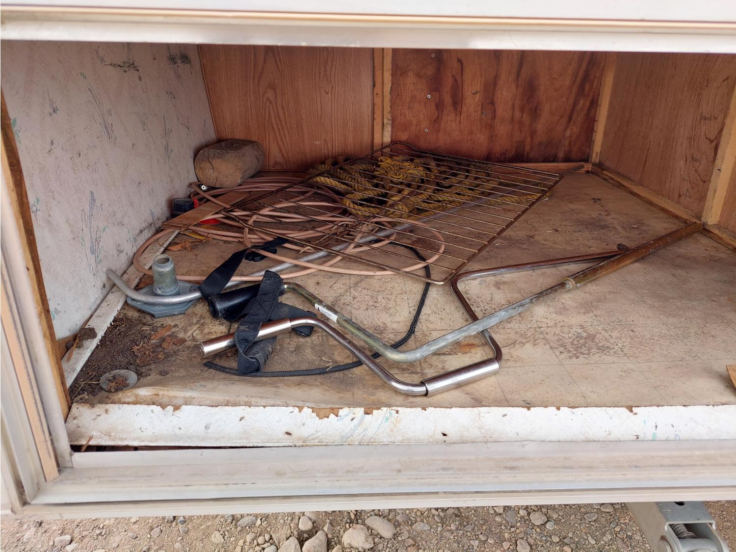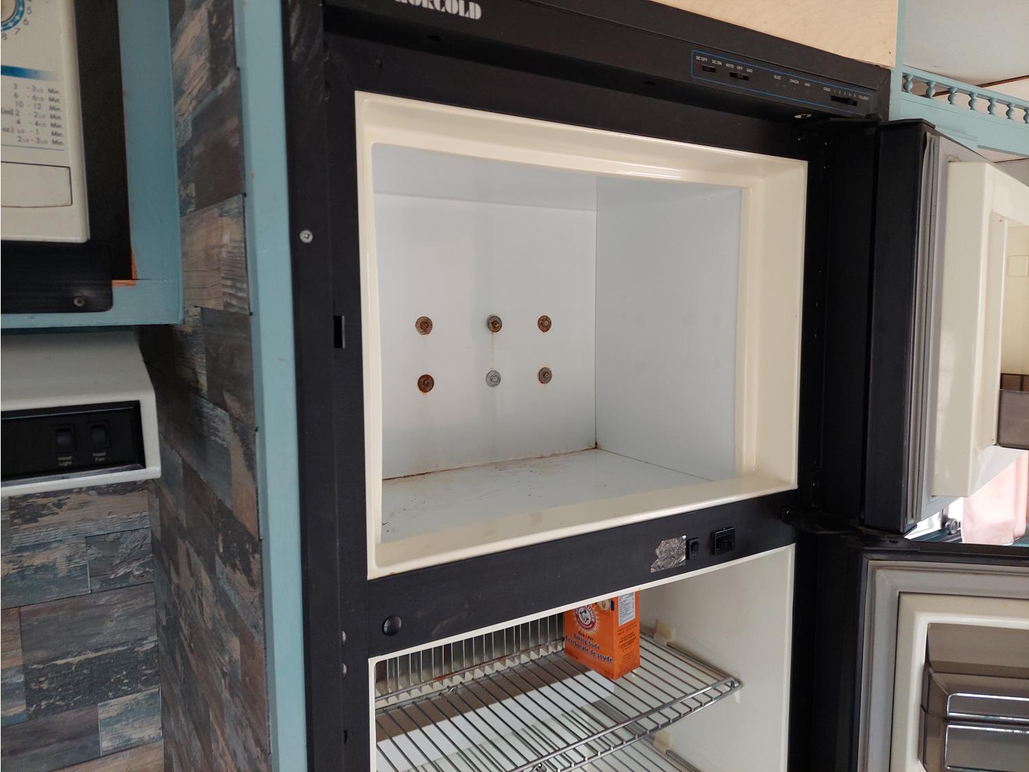 Sleeps 6, stove, fridge, microwave, full bath, master bedroom, A/C, outdoor shower, manual awning, spring suspension, electric brakes, rear scissor jacks, 205/75R15 tires