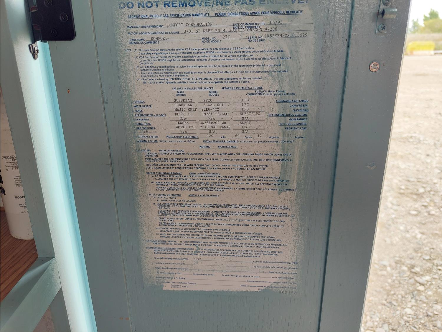 130 1995 Komfort 27F 27 Ft T/A 5th Wheel Travel Trailer