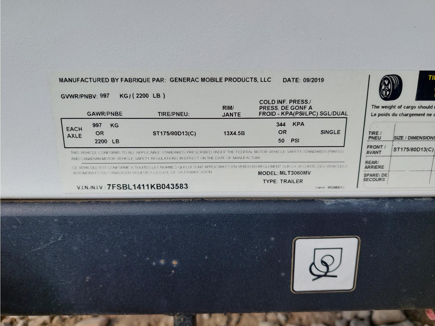 59 2019 Generac M6L 6kW Light Tower (Inoperable)