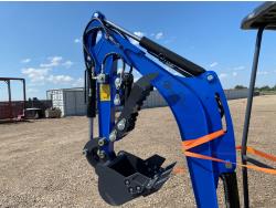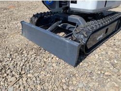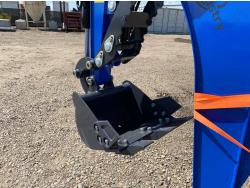 Open station, Kubota D722 3 cylinder diesel engine, 17 inch dig bucket, manual coupler, hydraulic thumb, 2 Ft 4 inch stick, swing boom, aux hydraulics, 43 inch backfill blade, 7 inch rubber tracks