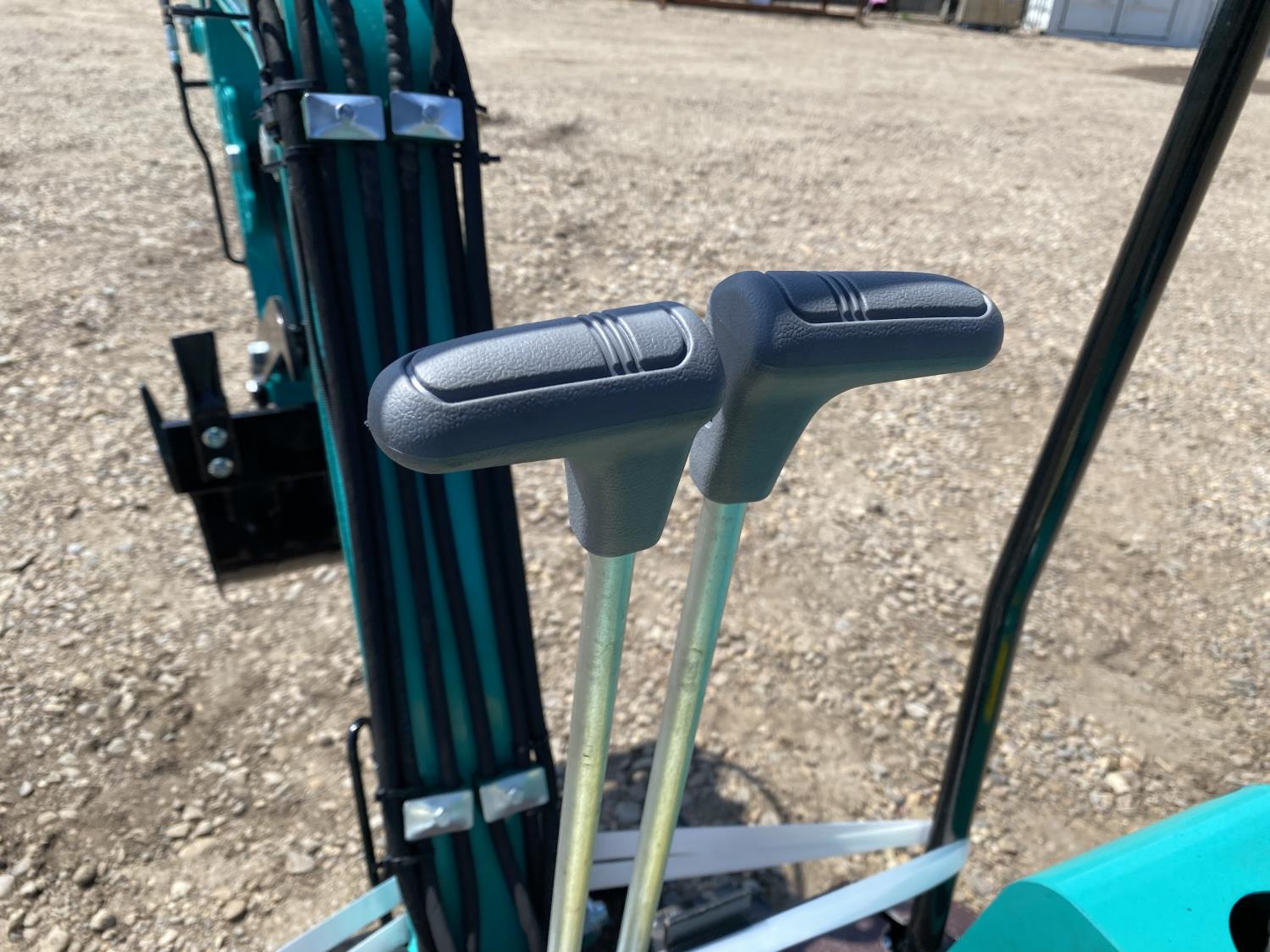 Open station, Zonsen 17Hp gas engine, 17 inch dig bucket, manual coupler, manual thumb, 2 Ft 4 inch stick, aux hydraulics, 37 inch backfill blade, 7 inch rubber tracks