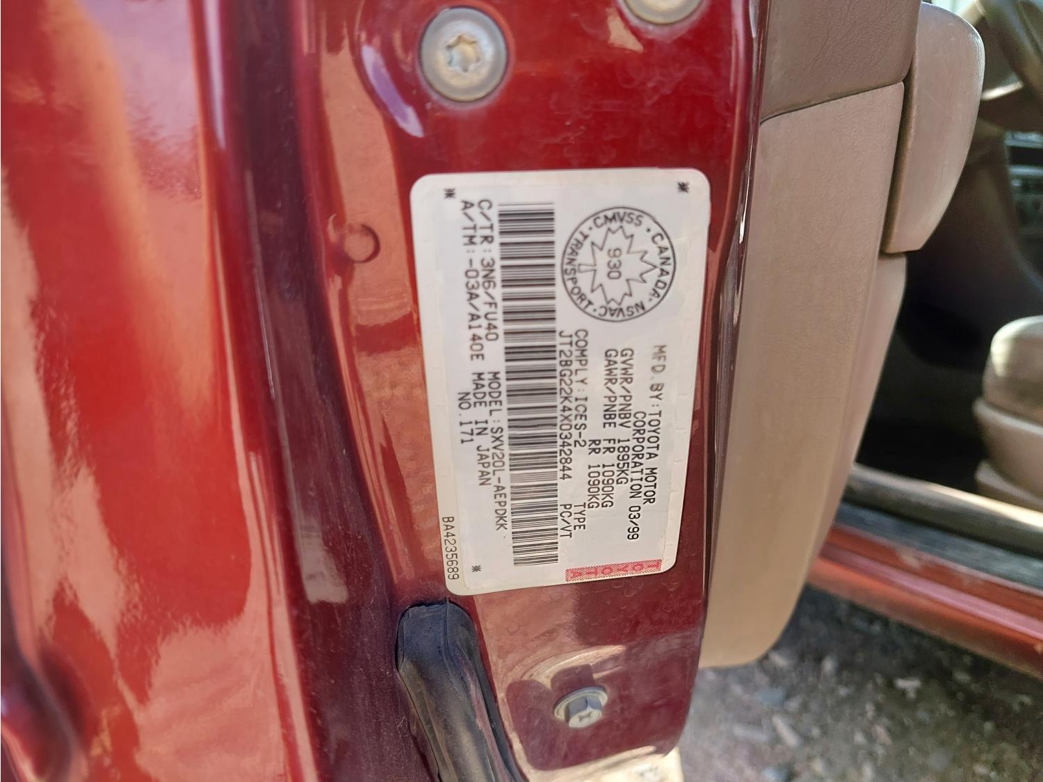 - JT2BG22K4X0342844