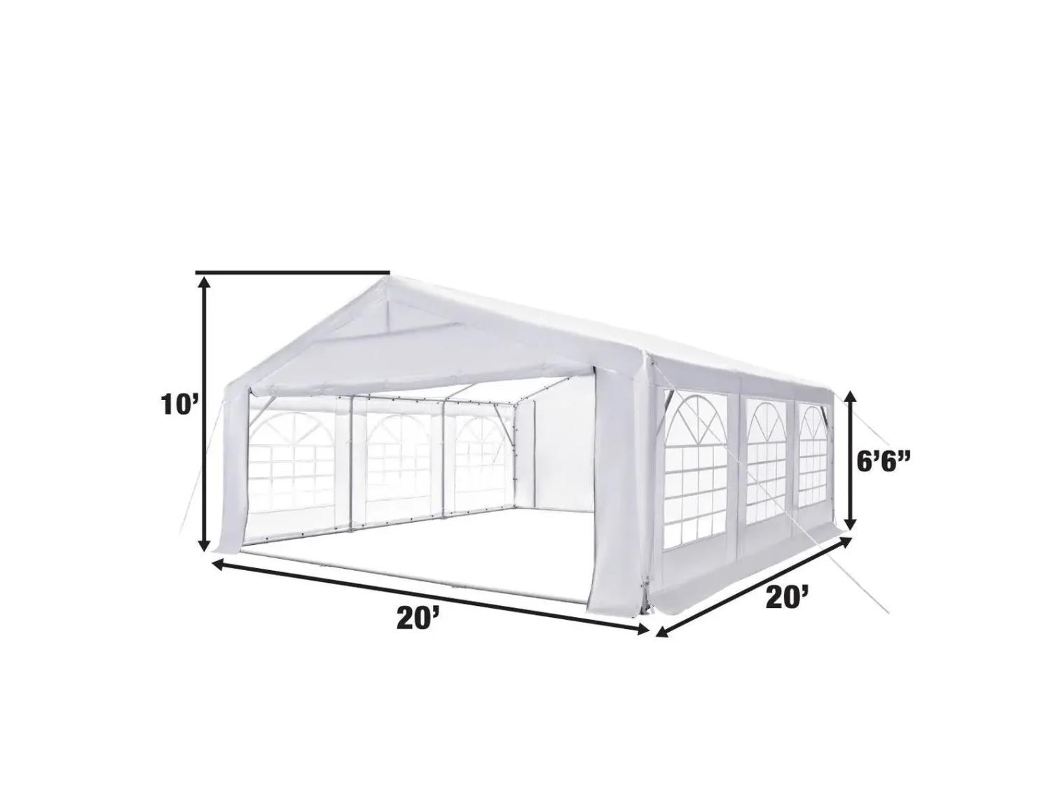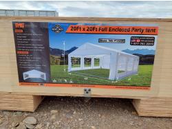 107 StanForge PT2020F 20 Ft X 20 Ft Heavy Duty Outdoor Part Tent w/ Removable Sidewalls & Roll-Up Doors (Unused)