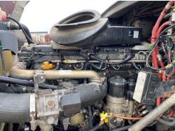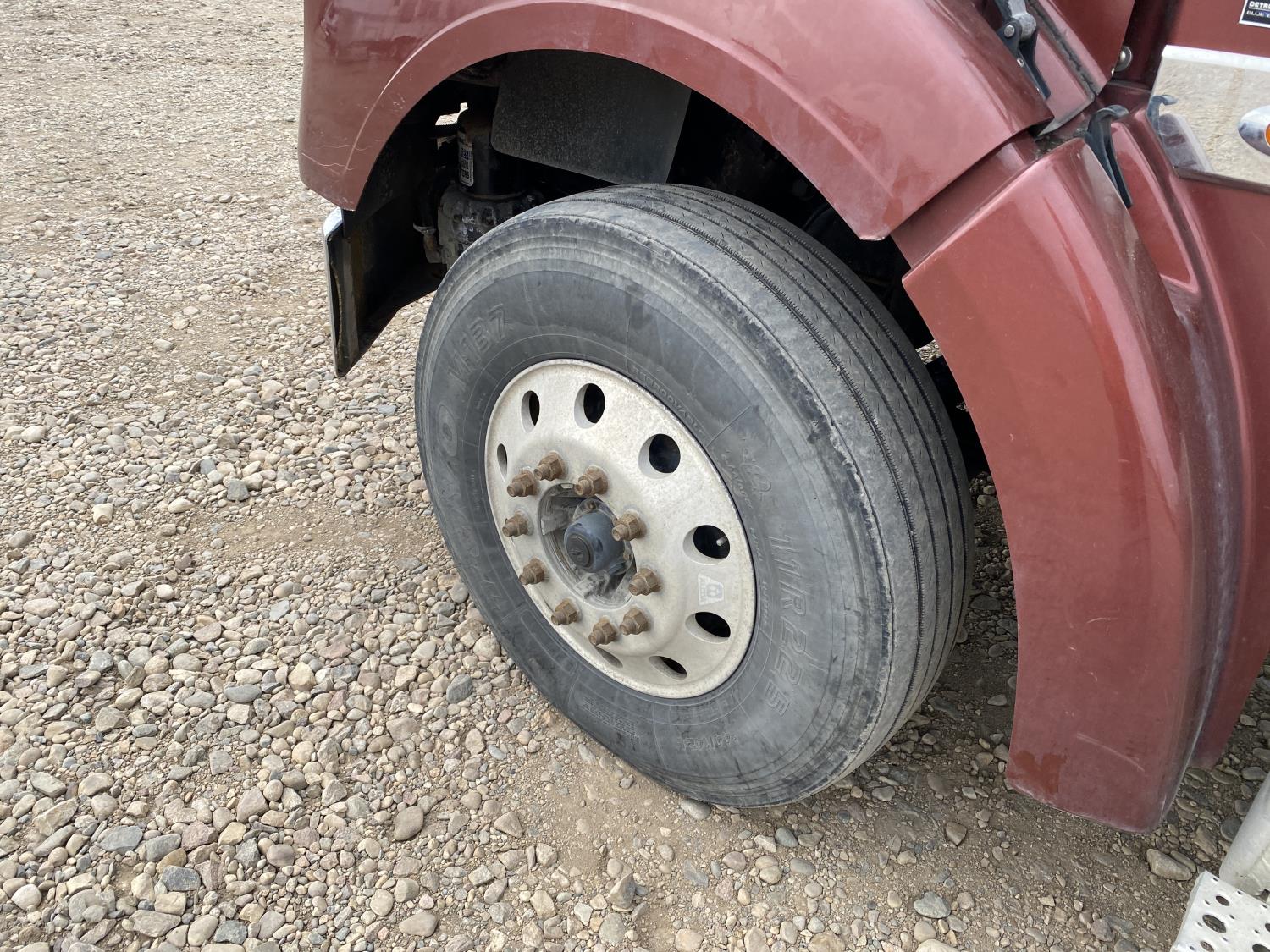 Detroit DD15 14.8 L 6 cylinder 560 HP engine, DEF required, engine brake, engine block heater, Eaton Fuller RTLO-18918B 18 speed manual transmission, A/C, cruise control, air ride seats, aluminum headache rack, air ride cab, AirLiner air ride suspension, 12,350 lb front axle, 46,000 lb rear axles, full lockers, 3.73 ratio, 197 inch WB, Meritor RT-46-160P drive axles, all aluminum wheels, 11R22.5 tires