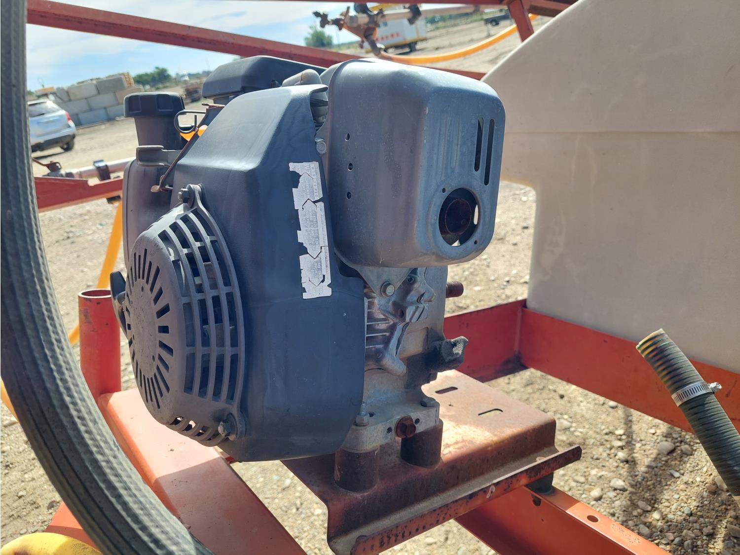 gas engine, 420 US gallon poly tank, chemical mix tank, single nozzle, 20 inch spacing, 48 inch W x 105 inch L base