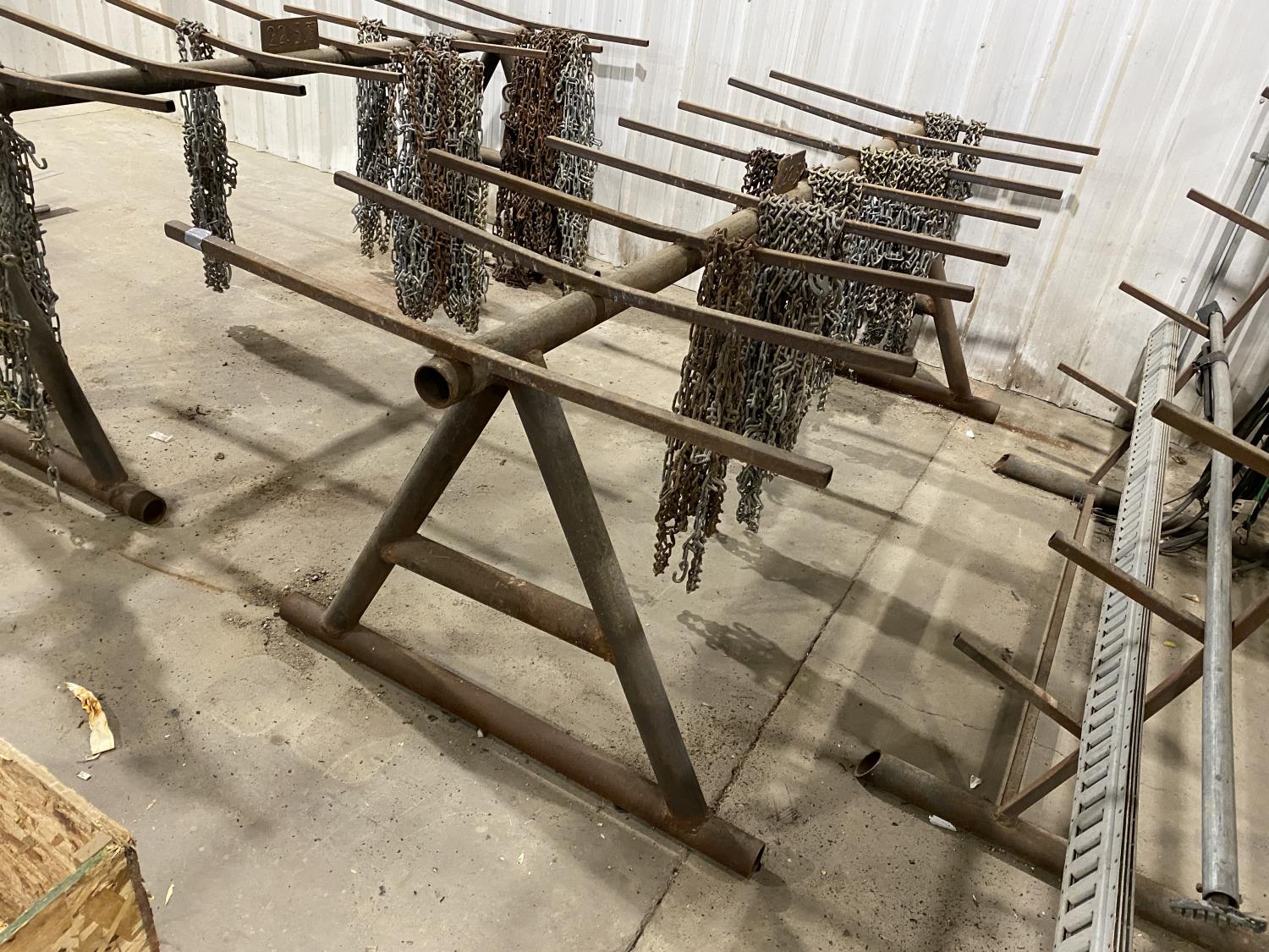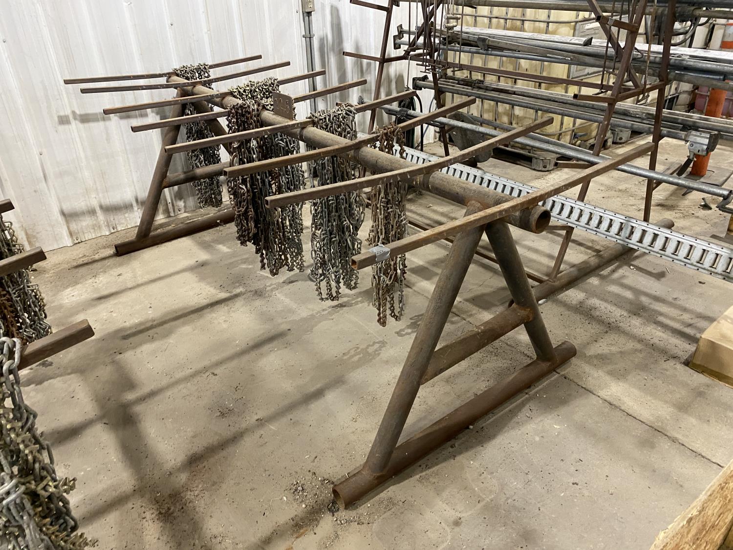 1891 108 Inch Tire Chain Rack w/ Misc Tire Chains