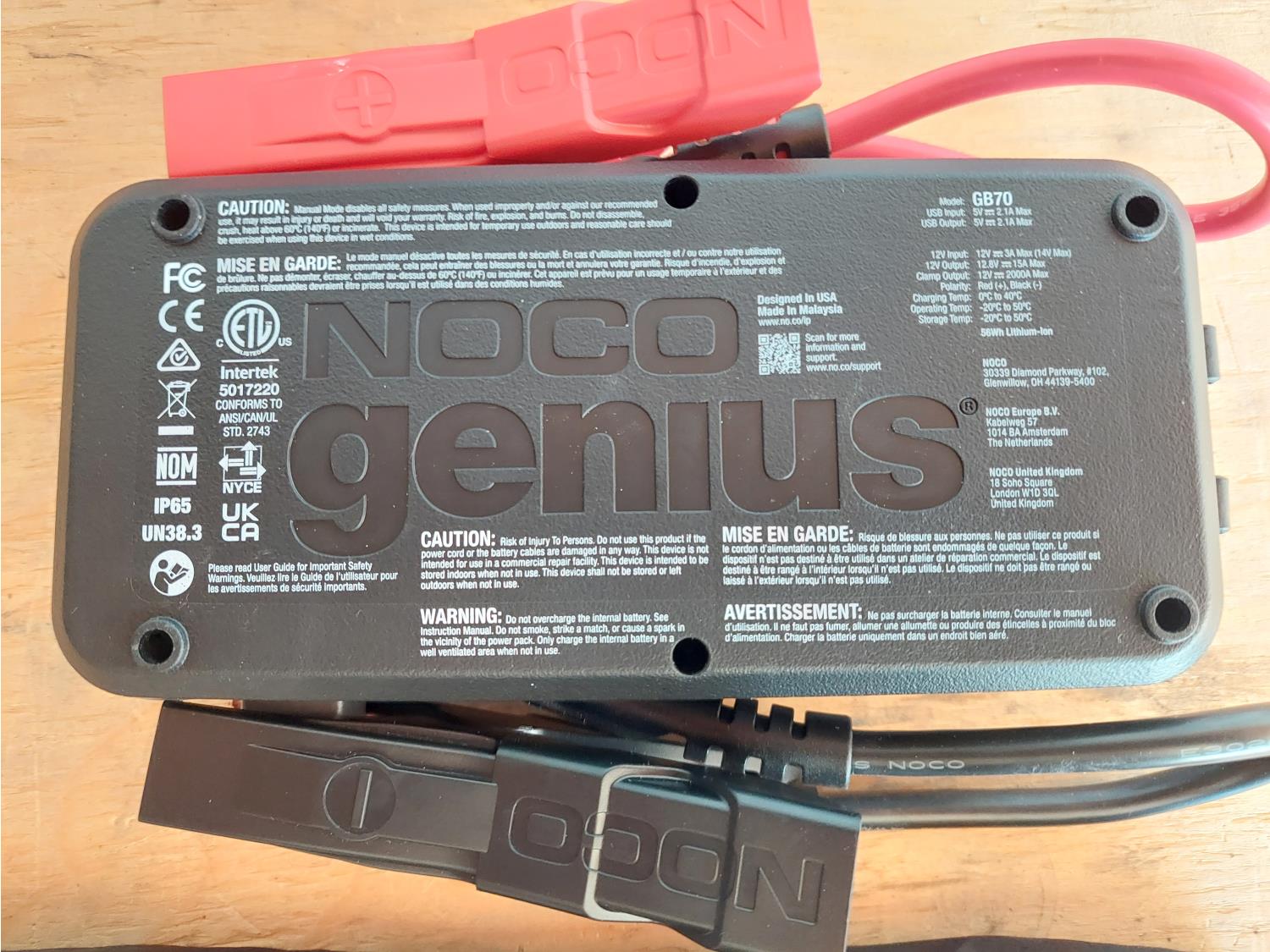1219 Noco Genius GB70 2000A Jump Starter