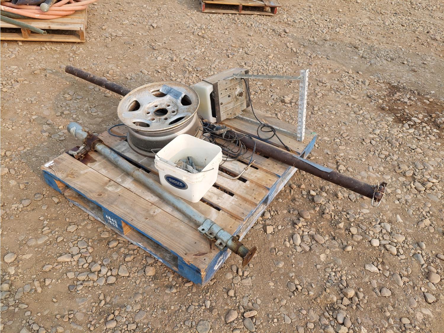 includes (1) 17 inch rim, (1) clothesline post, (1) camper jack, and miscellaneous hardware