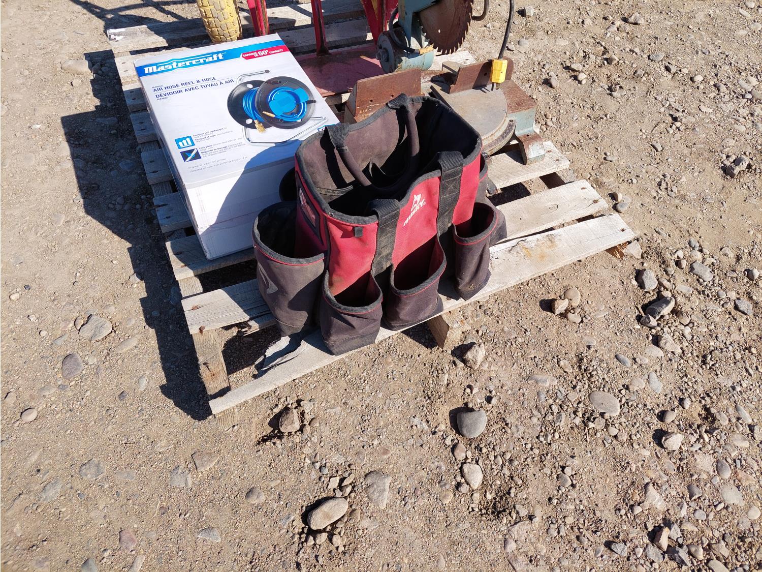 120V, 13 Amp, includes Mastercraft hose and reel, Husky tool bag, and wheeled dolly
