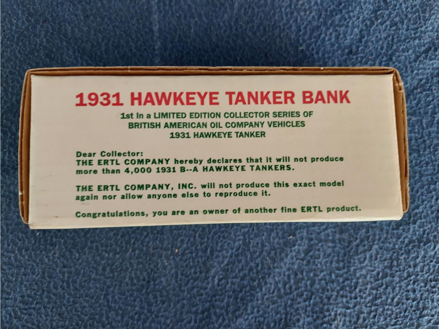 1482 Ertl Collectibles Die-Cast 1931 Hawkeye Tanker Truck Coin Bank (New in Box)