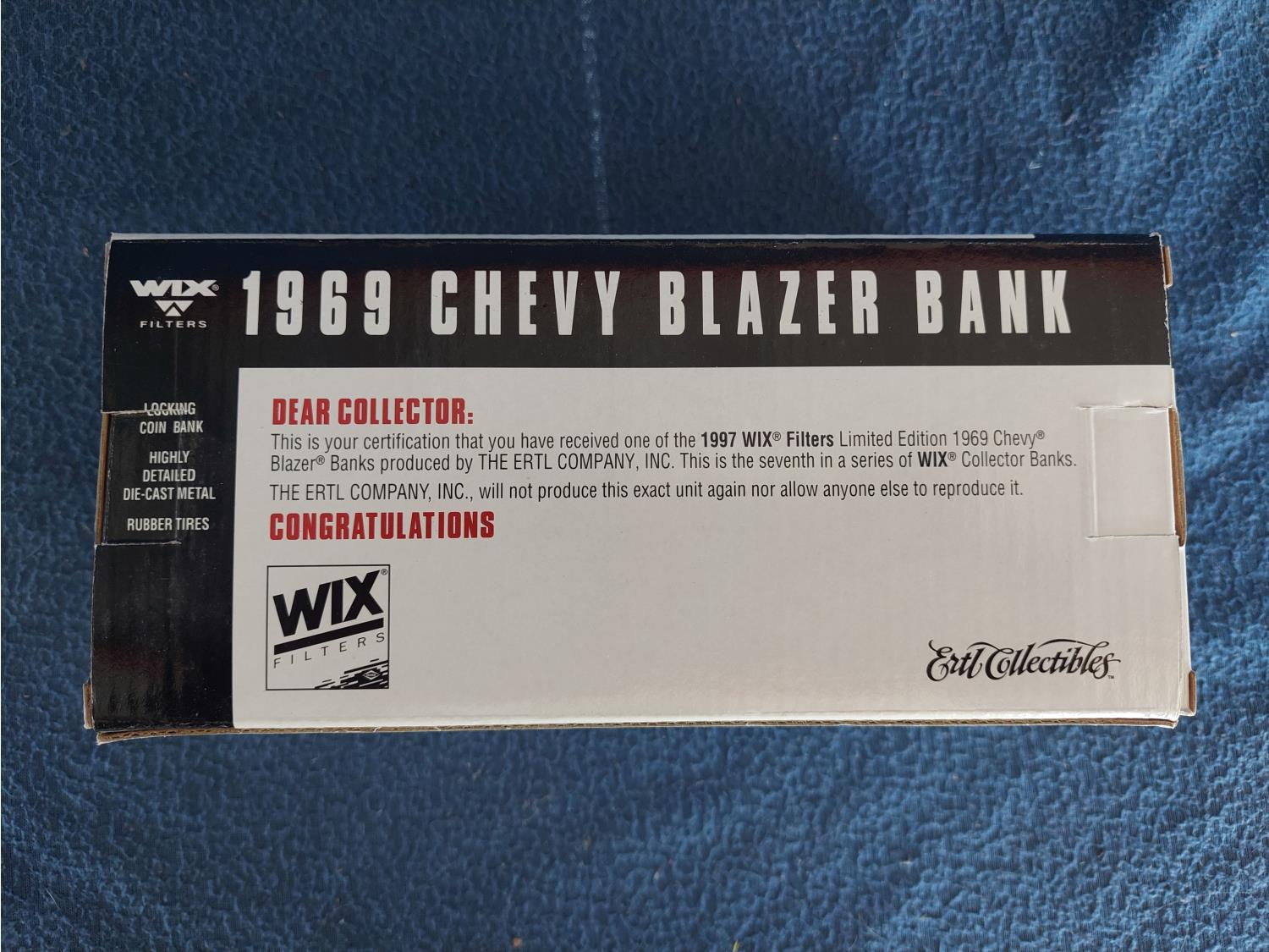1552 Ertl Collectibles Die-Cast 1969 Wix Filters Chevy Blazer Coin Bank (New in Box)