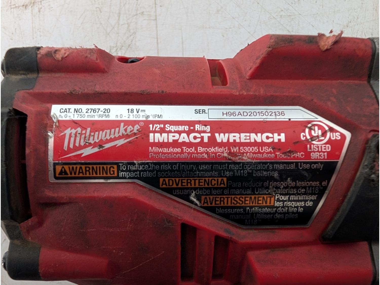 1142 Milwaukee 2767-20 1/2 Inch Impact Gun w/ Xc 6.0 Battery