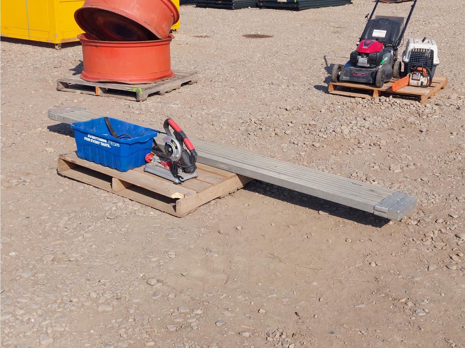 119 inch L x 12 inch W, includes TMT 6 inch cut off saw, and (4) oxy/acetylene regulators