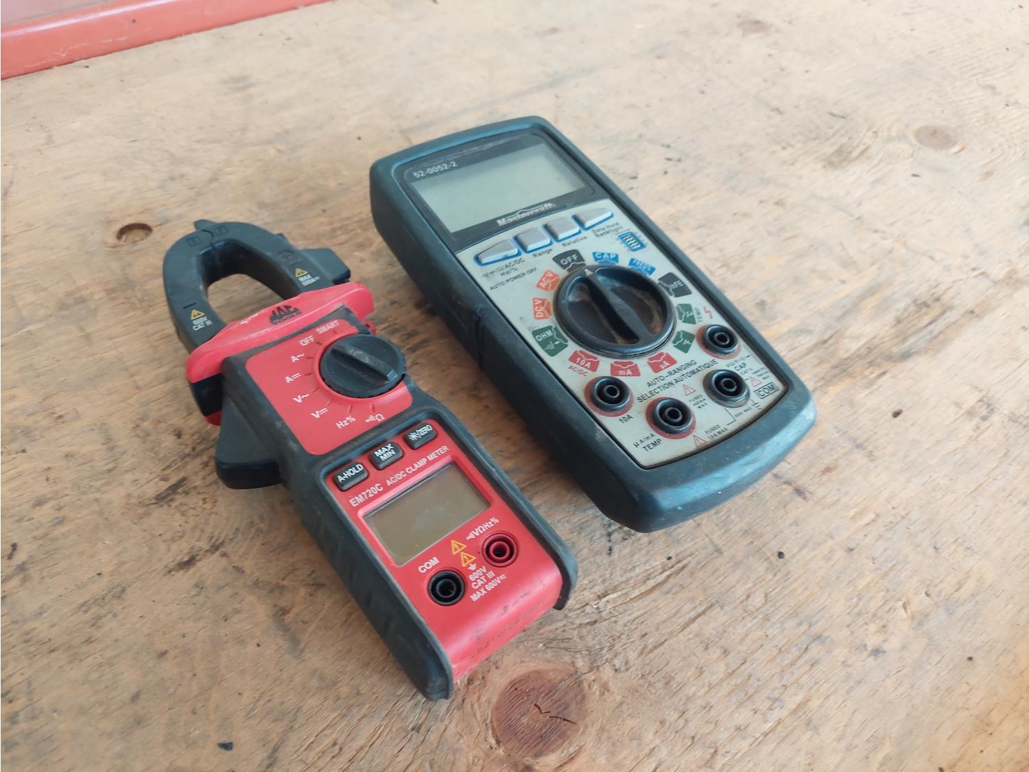 (1) Mac Tools EM720C clap on multimeter, (1) Mastercraft 52-0052-2 multimeter