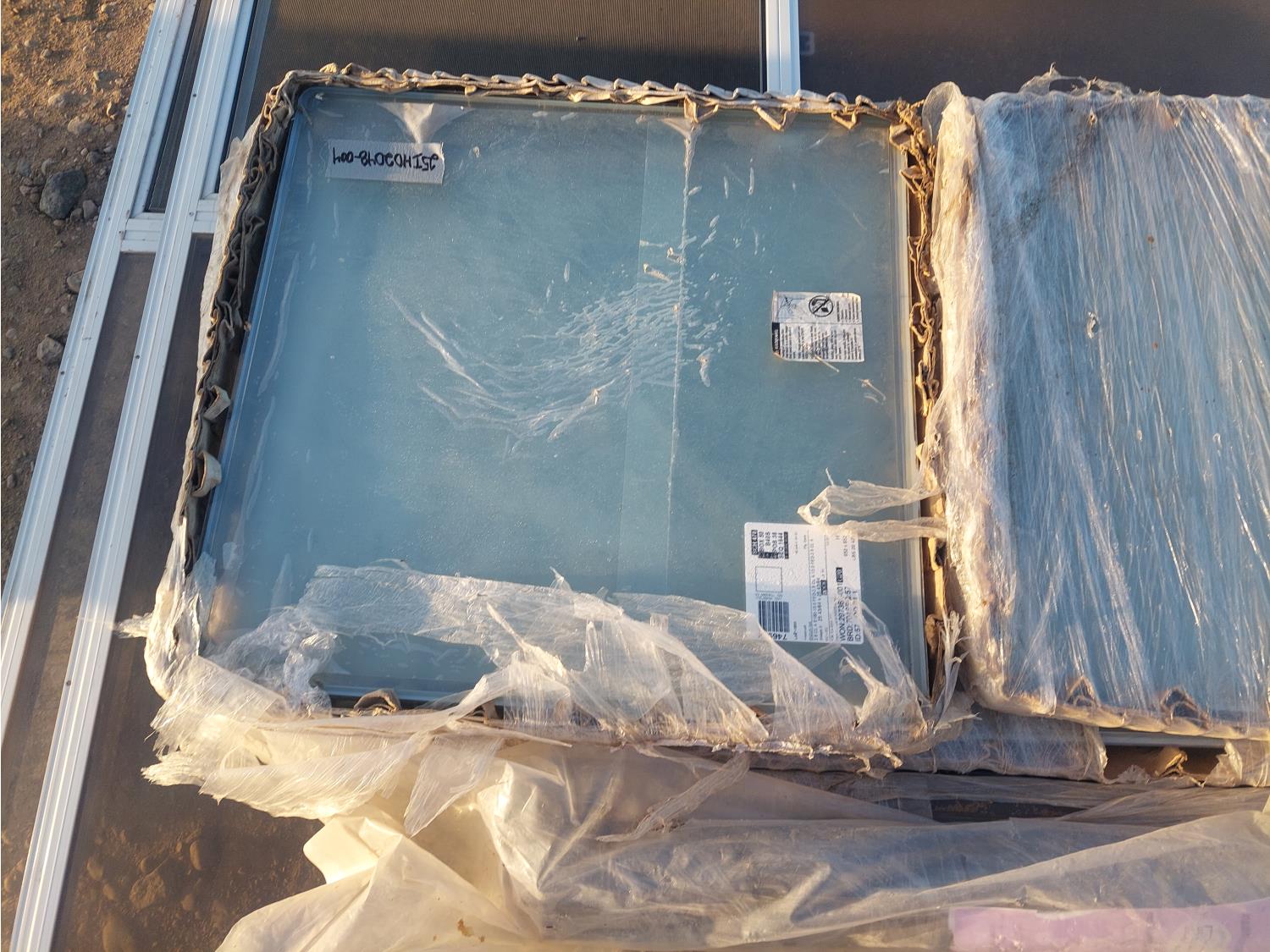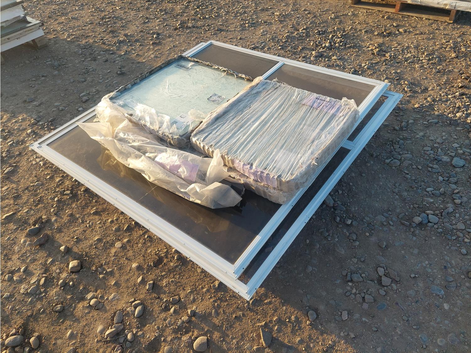 (1) 58 inch W x 61 inch T window, (1) 65 inch W x 61 inch T window, (1) 24 inch W x 48 inch T window glass, (2) 24 inch W x 25 inch T window glass, includes glass frames