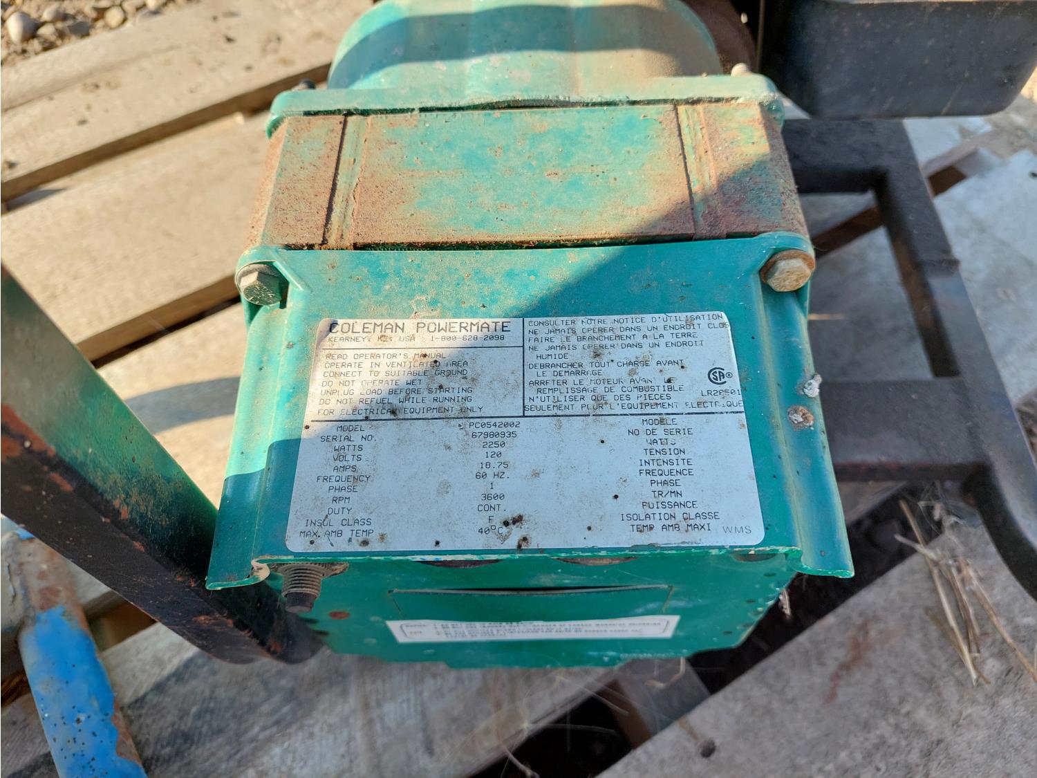 (1) Powerback 6250 Watt, (1) Coleman 2250 Watt