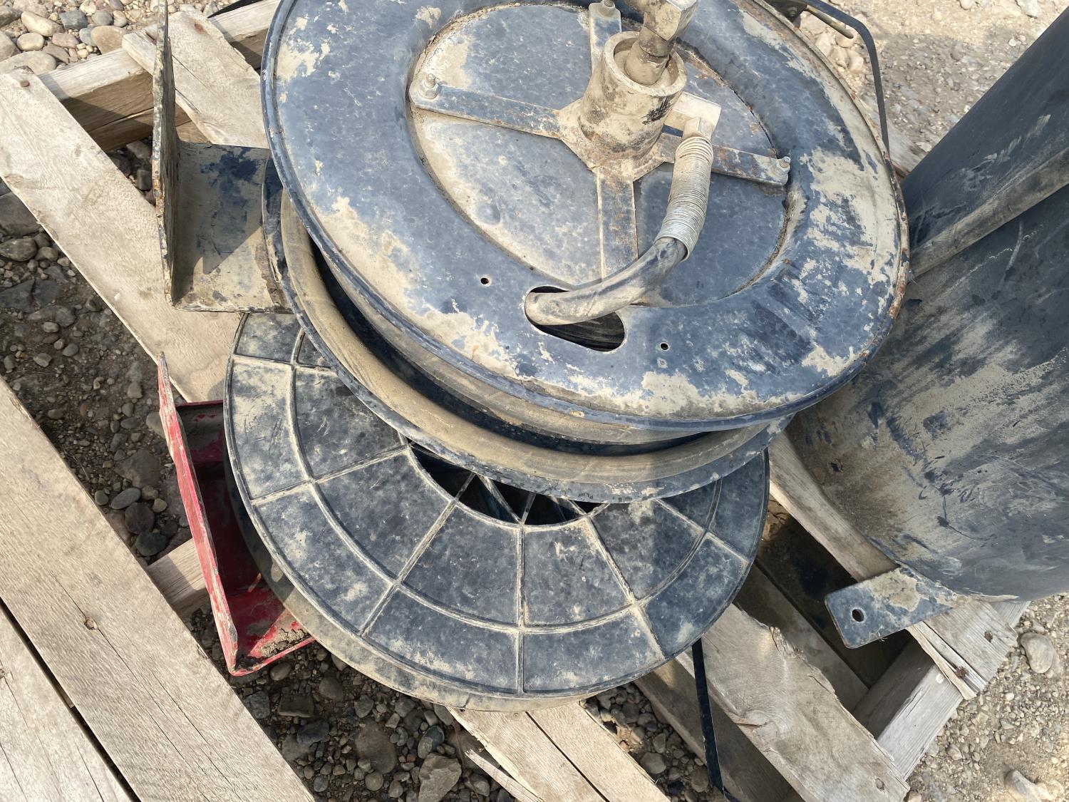 1241 Qty of (2) Hose Reels w/ Transfer Tank & Alemite Pump
