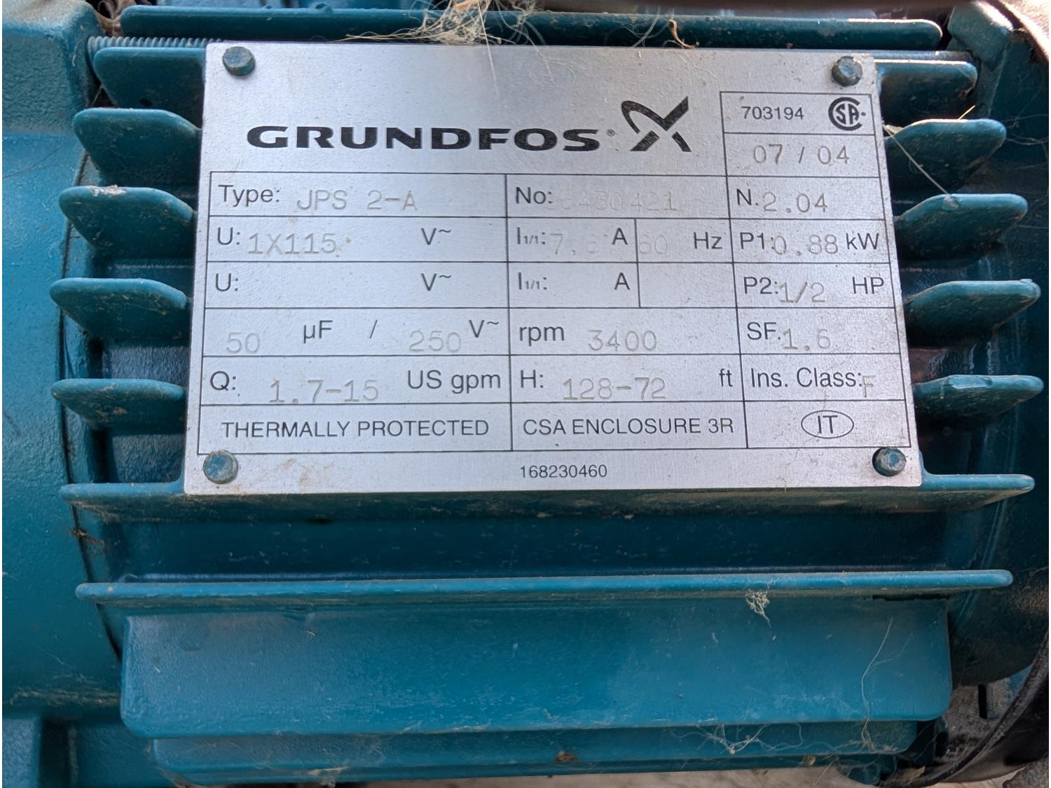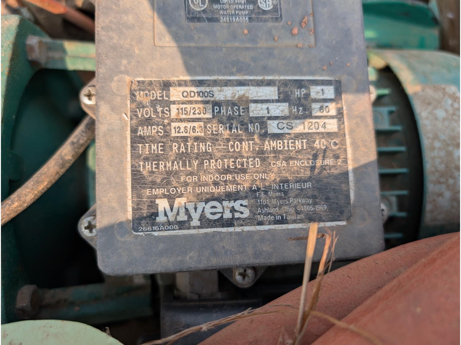 (2) 1/2 HP, 115/230v single phase. (1) Myers 1 HP, 115/230 single phase. (1) Grundfos 1/2 HP, 115v single phase