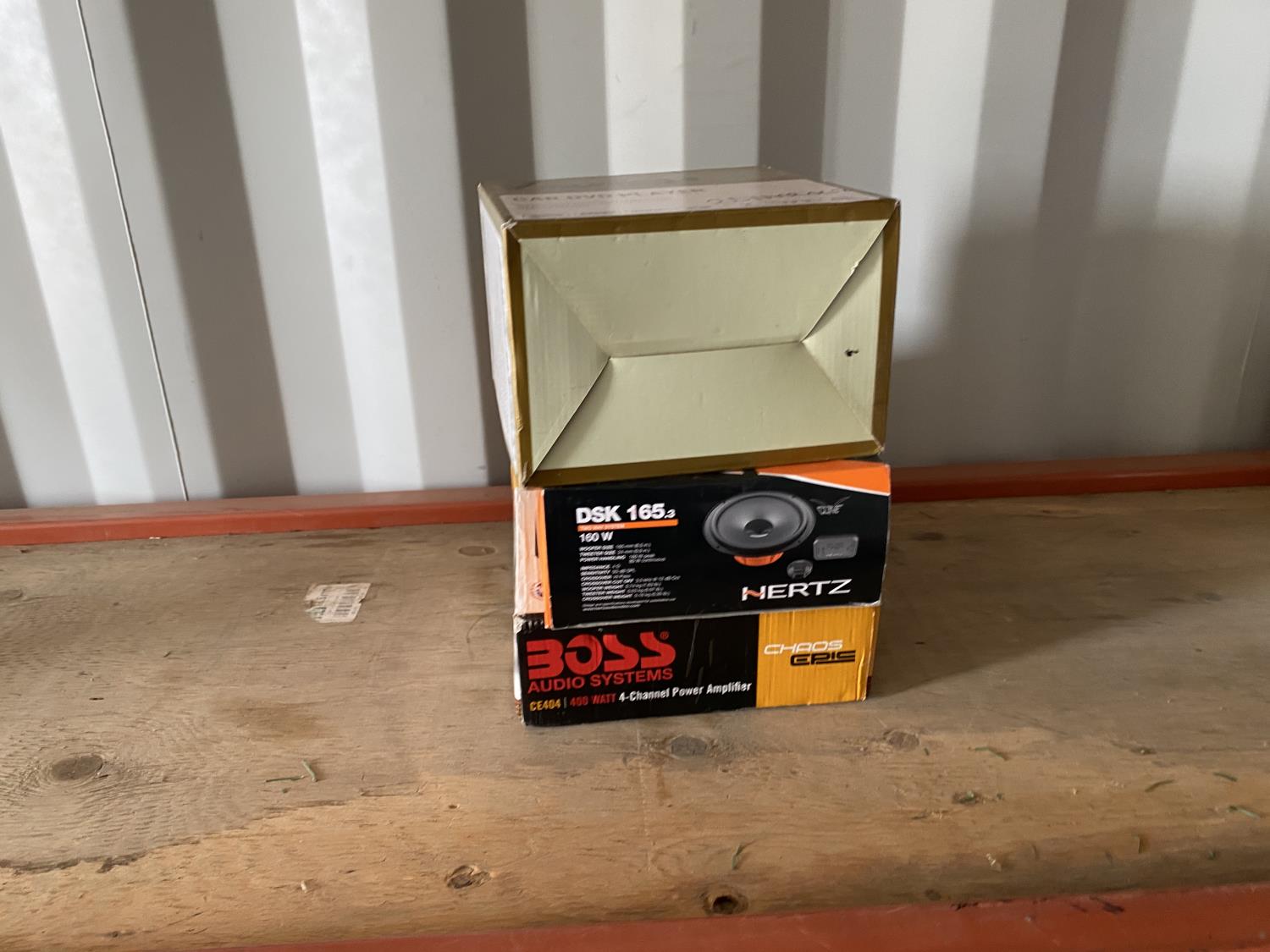 (1) Boss 400w 4 channel amplifier, (1) DSK 165.3 two way system, 6.5 inch subwoofer, 165 mm tweeters, 80w RMS, (1) Ouku vehicle DVD player