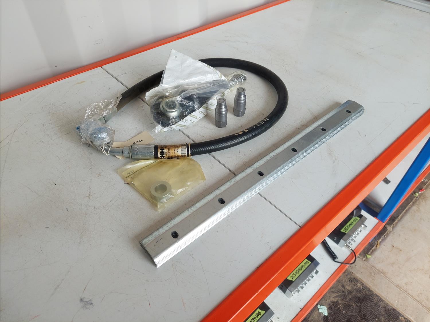 includes eyebolt part number 84561262, hose part number 433632A1, (2) flat face hydraulic nipples part number C702-04-04, (2) sleeves part number 87747362, and (5) 18.5 inch L x 1.5 inch W protectors part number MCD180117