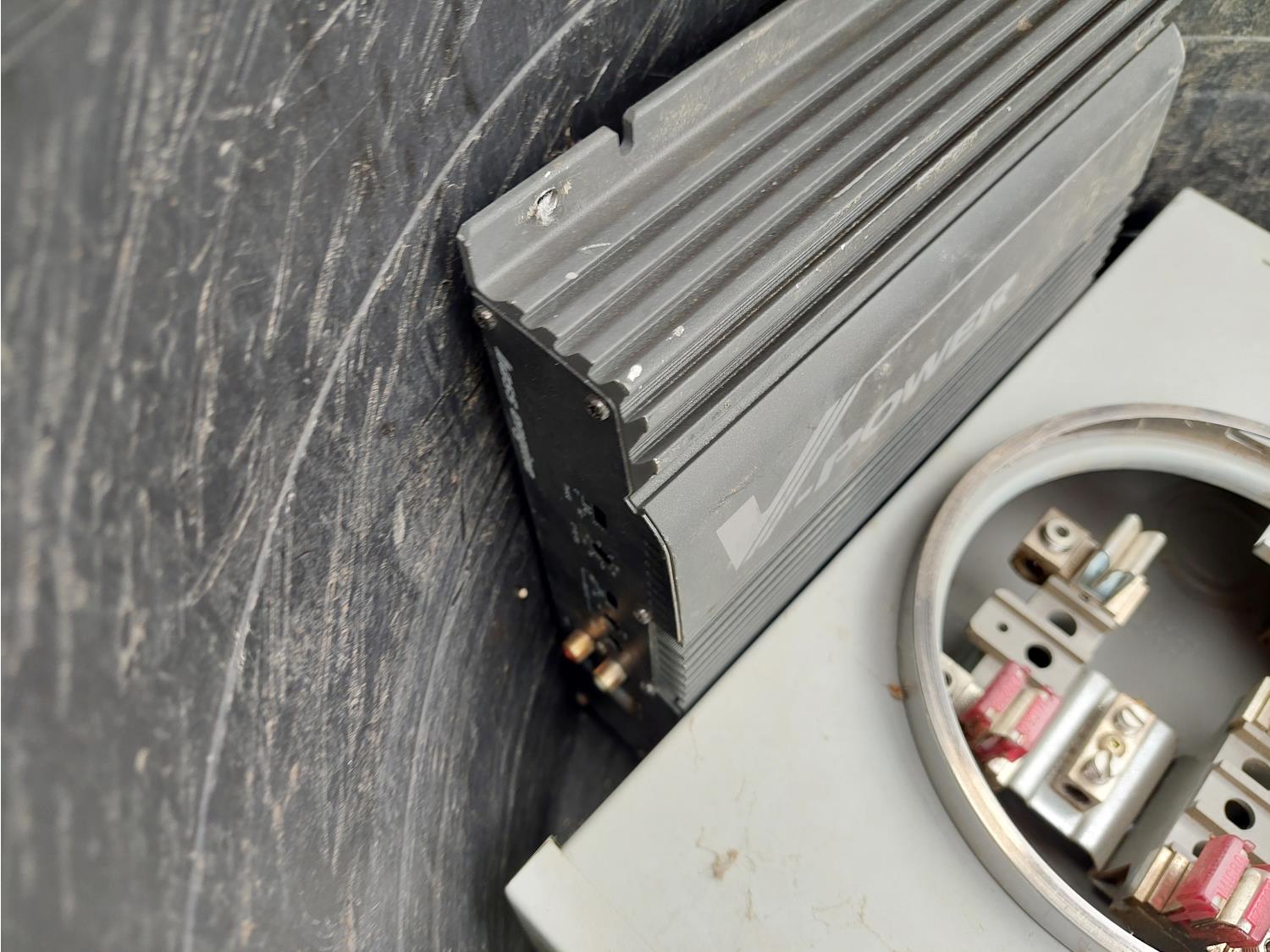 includes 115V, 1/3HP, single phase furnace blower fan, Motomaster Eliminator 600W digital power inverter, V Power car stereo amplifier, and miscellaneous electrical parts