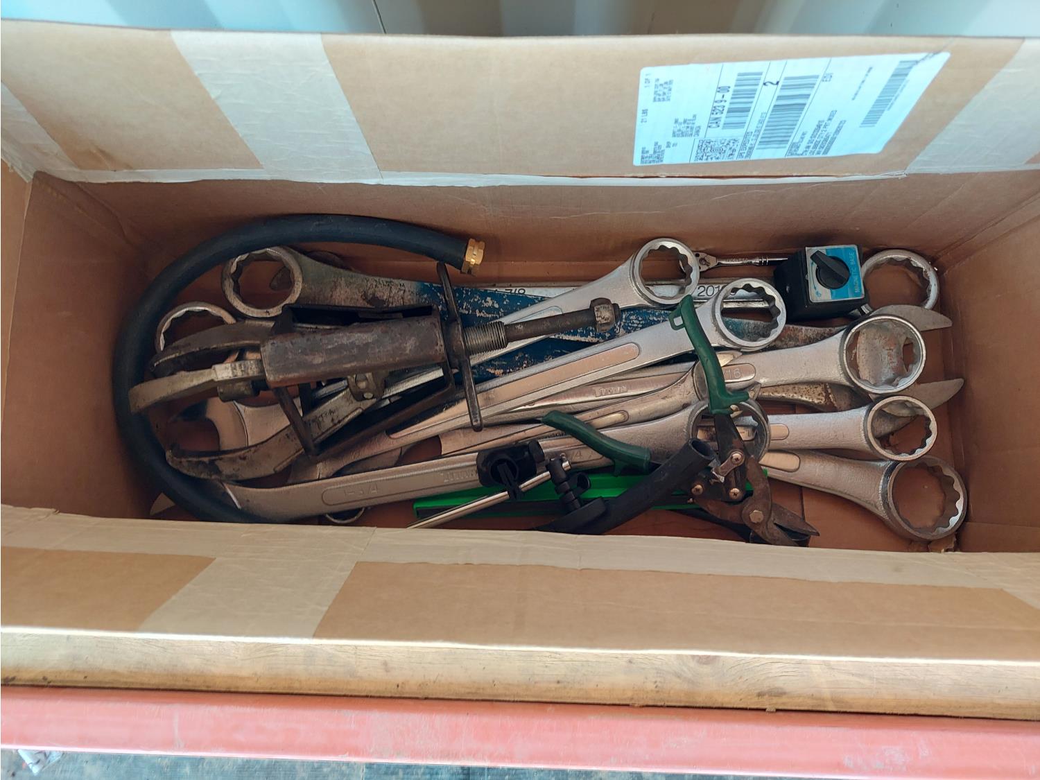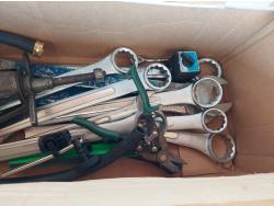 includes various combination wrenches, bearing puller, tin snips, and magnets