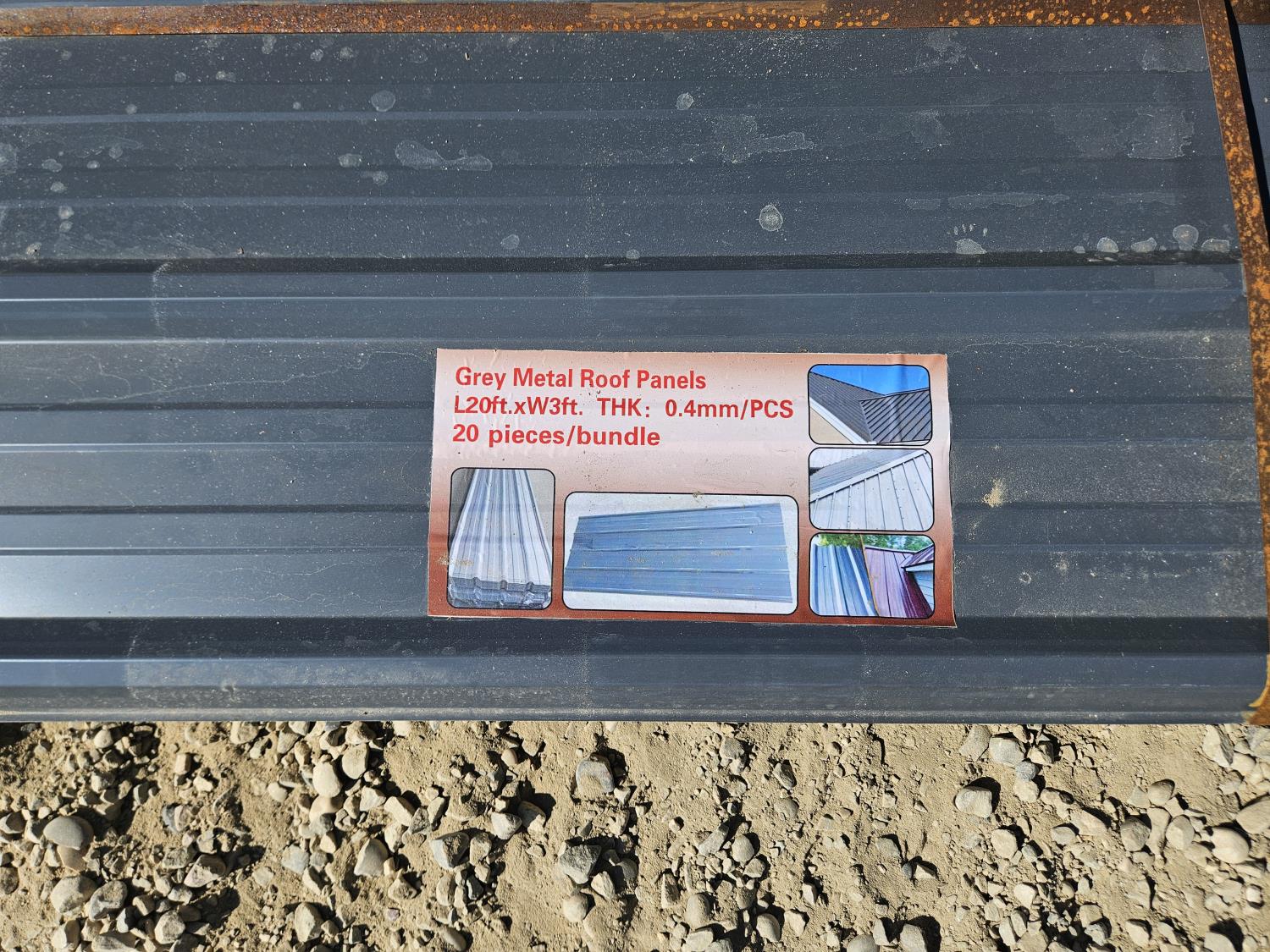 3052 (20) Grey Metal Roofing Panels (Unused)