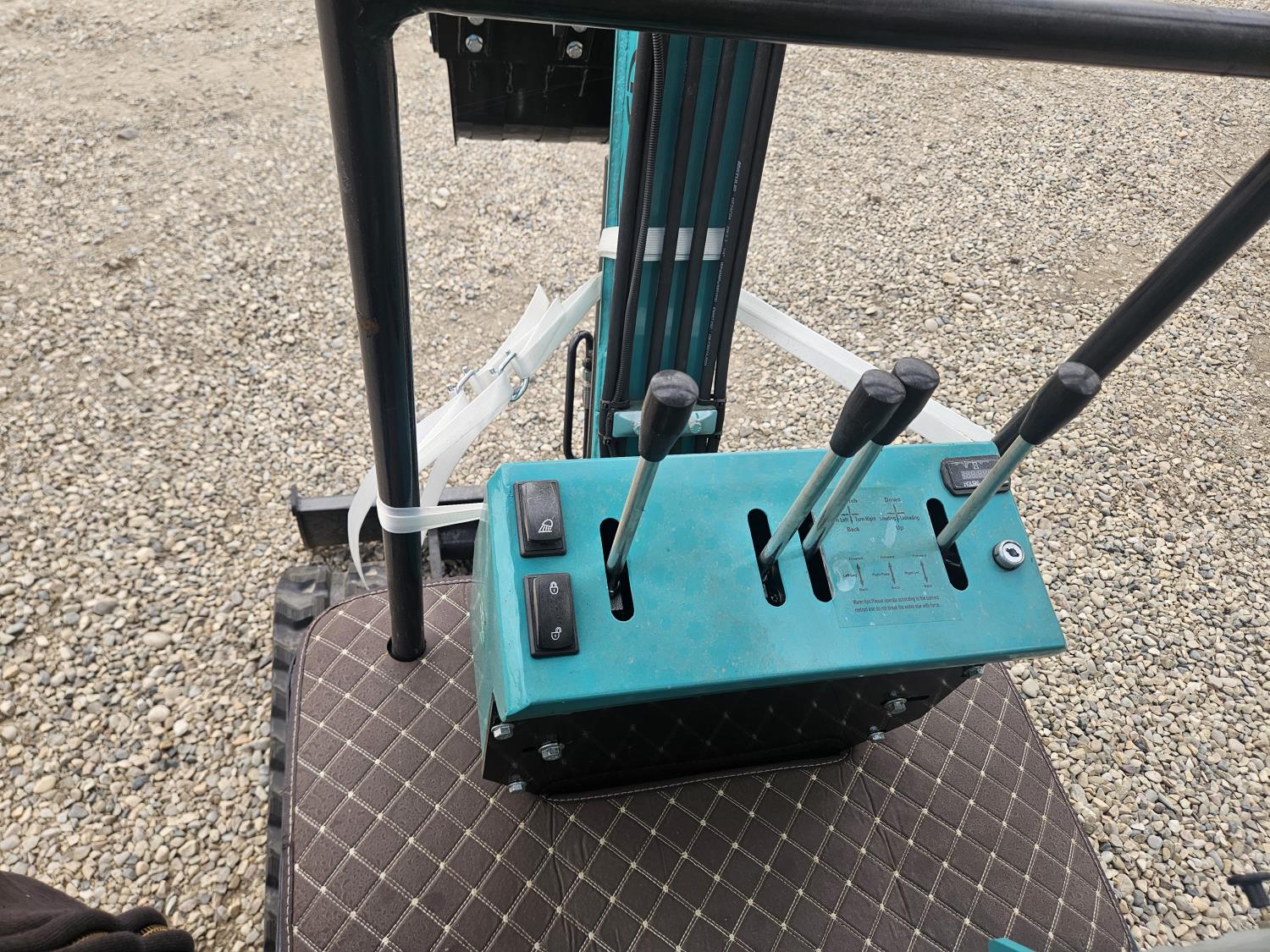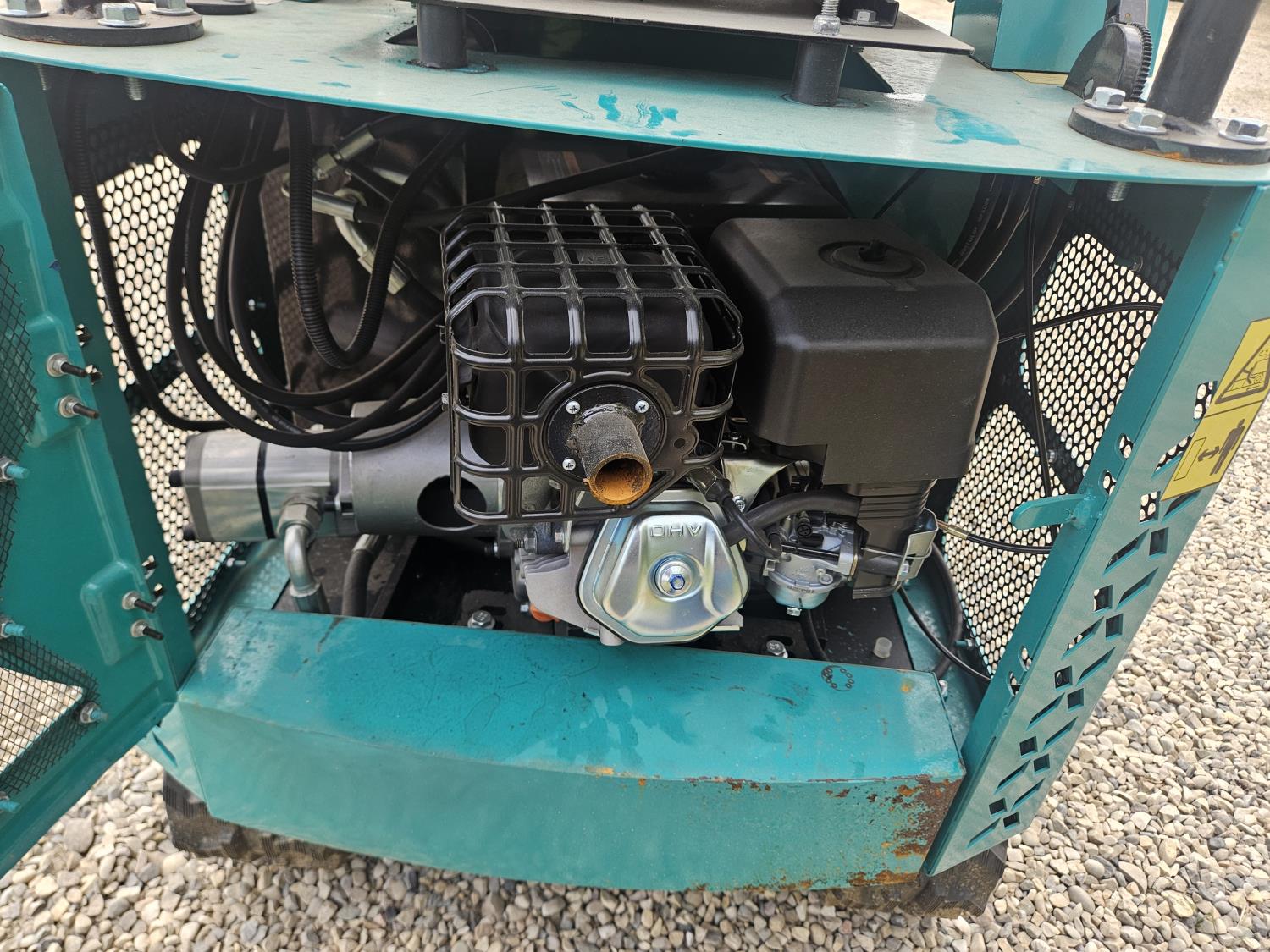 Enclosed cab, 13.5 HP gas engine, 15 inch dig bucket, 2 Ft 8 inch stick, backfill blade, rubber tracks