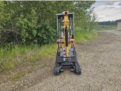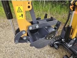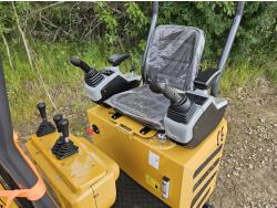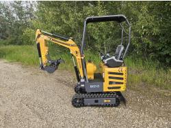Open station, 17 HP gas engine, 16 inch dig bucket, manual coupler, manual thumb, 2 Ft 8 inch stick, backfill blade, 7 inch rubber tracks