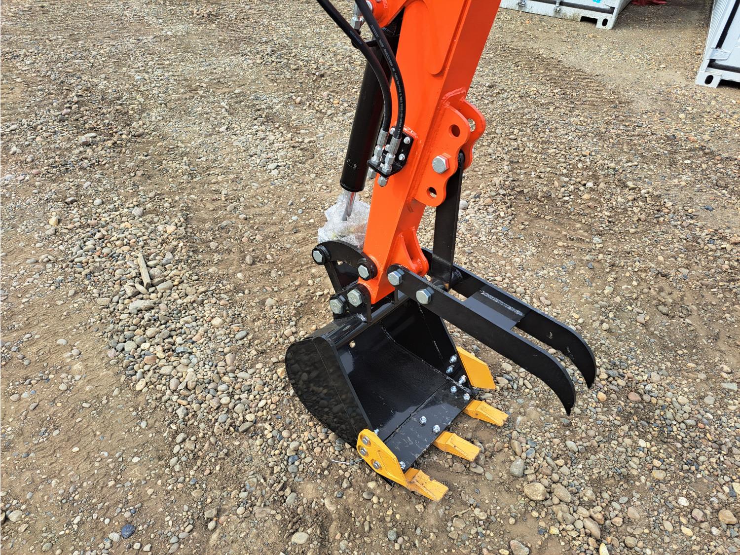 Open station, Kubota 15 HP diesel engine, 15 inch dig bucket, manual thumb, backfill blade, 7 inch rubber tracks