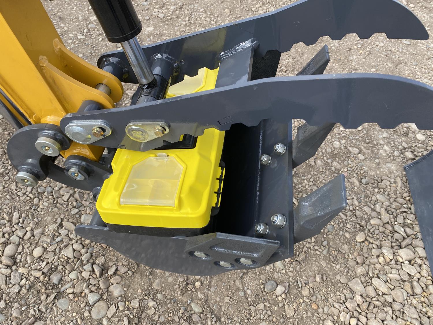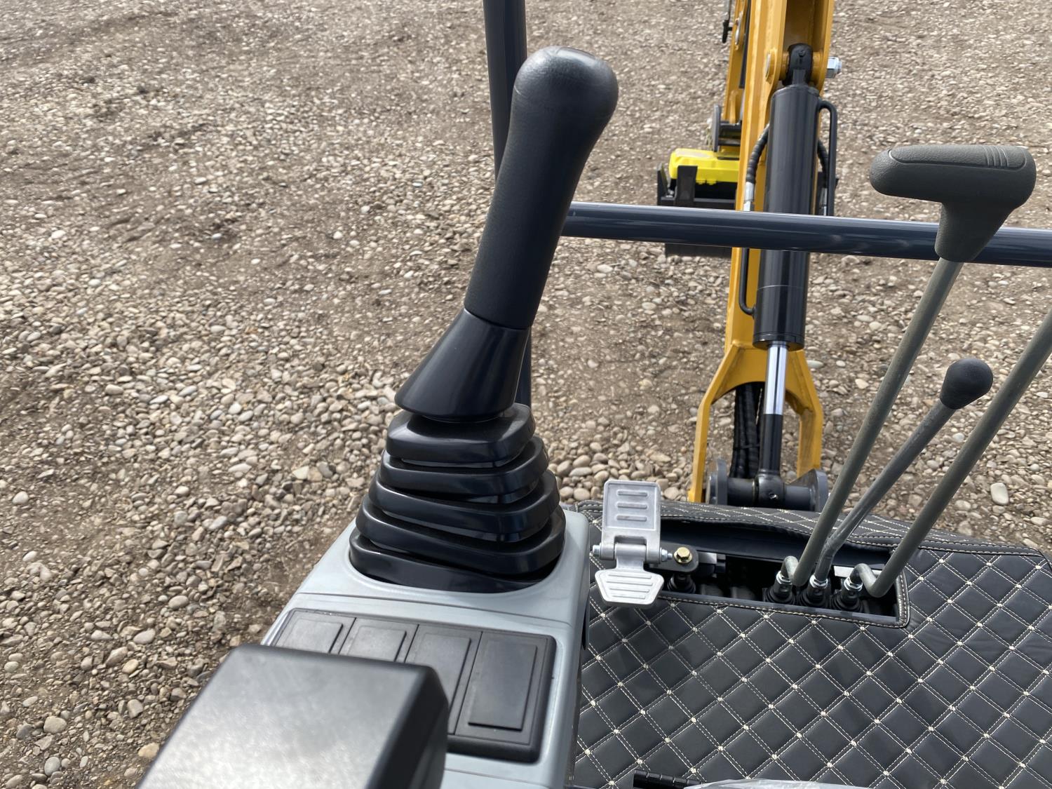 Open station, 23 HP gas engine, 17 inch dig bucket, manual coupler, hydraulic thumb, 2 Ft 4 inch stick, 43 inch backfill blade, 7 inch rubber tracks