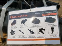 8 inch bucket, 20 inch bucket, 32 inch bucket, quick coupler, ripper, grapple, rake, 8 inch auger, 12 inch auger
