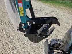 Open station, 420cc gas engine, 16 inch dig bucket, manual thumb, 2 Ft 8 inch stick, backfill blade, 7 inch rubber tracks