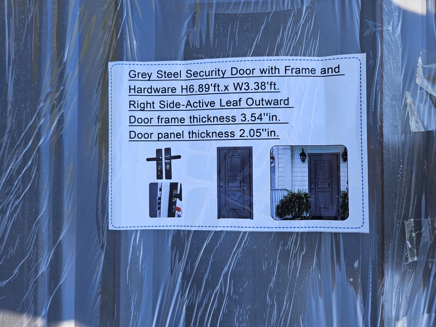 3081 Grey Steel Security Door with Frame and Hardware (Unused)