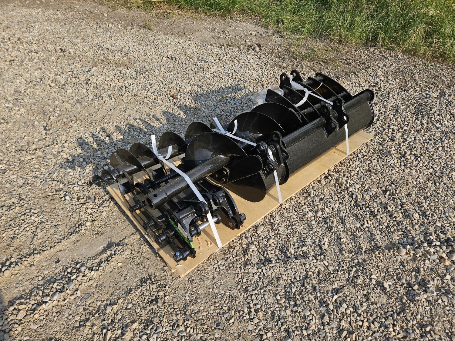 QTY (8) rake, ripper, grabber, 12 inch auger, 16 inch auger, 8 inch narrow bucket, 24 inch bucket, 32 inch bucket