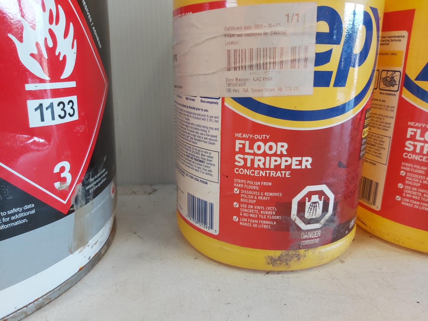 5270 (2) Zep 1 Gallon Floor Stripper and 17L IKO S.A.M Adhesive (Unused)