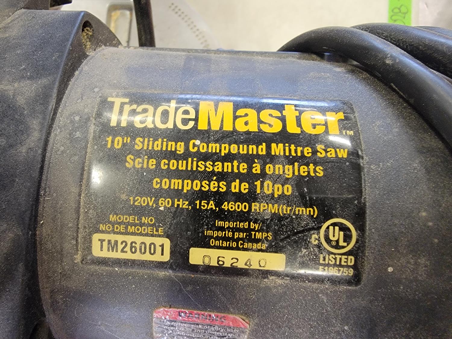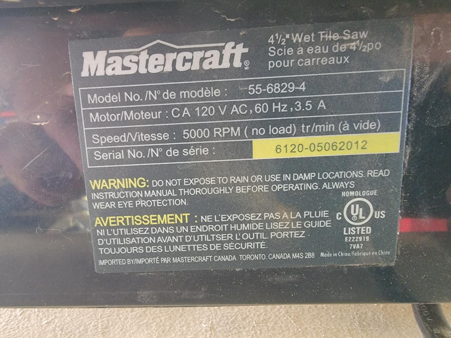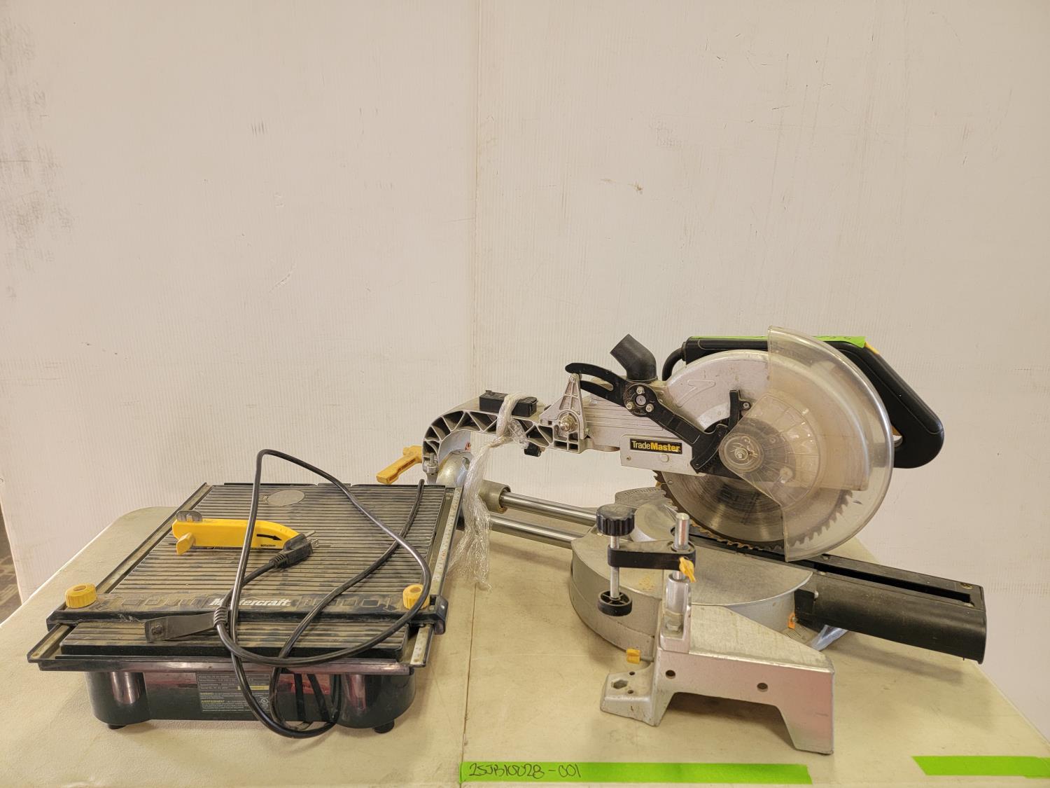 5096 Trade Master 10 Inch Sliding Compound Miter Saw and Mastercraft 4-1/2 Inch Wet Tile Saw