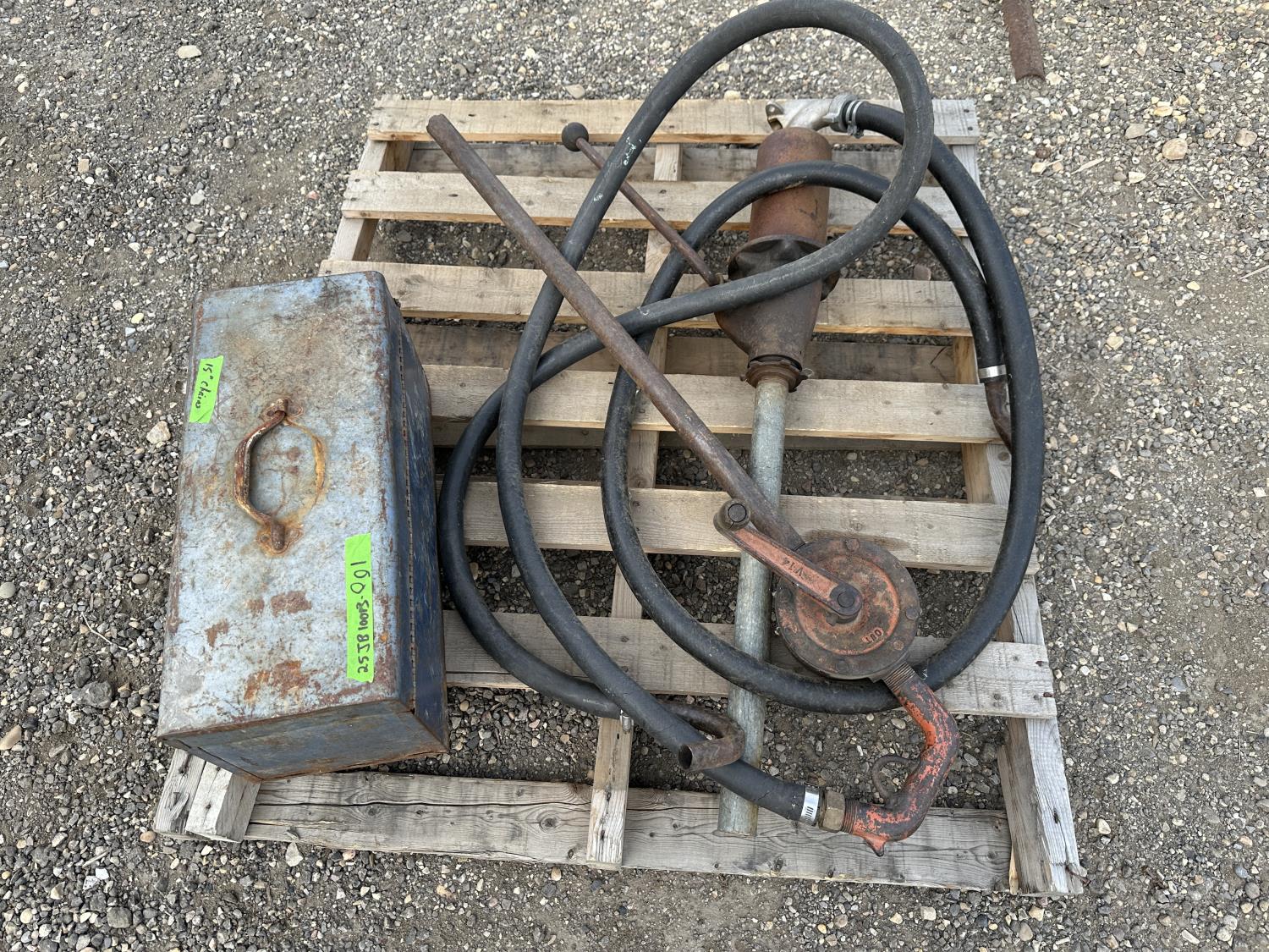 5278 (2) Manual Barrel Pumps and 15 Inch Tire Chains
