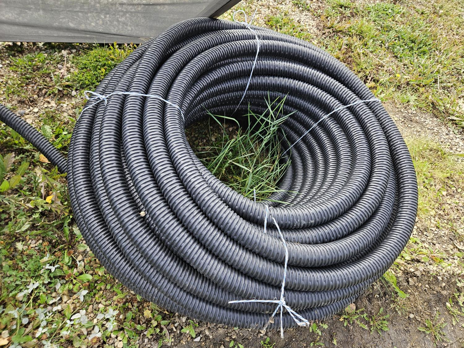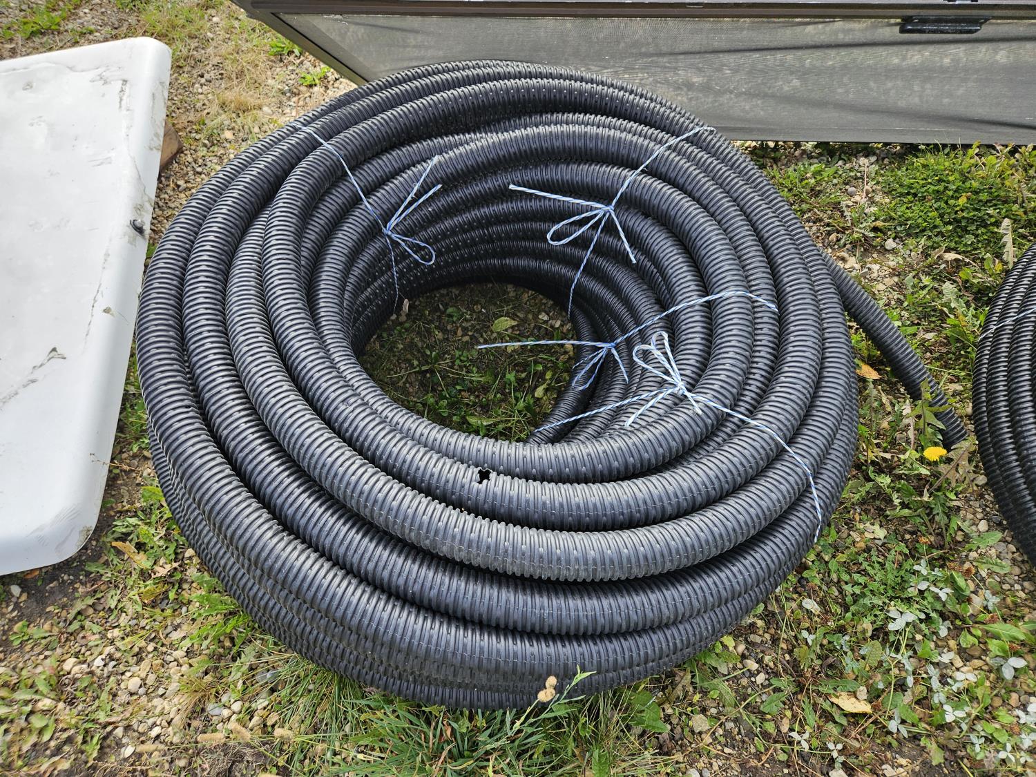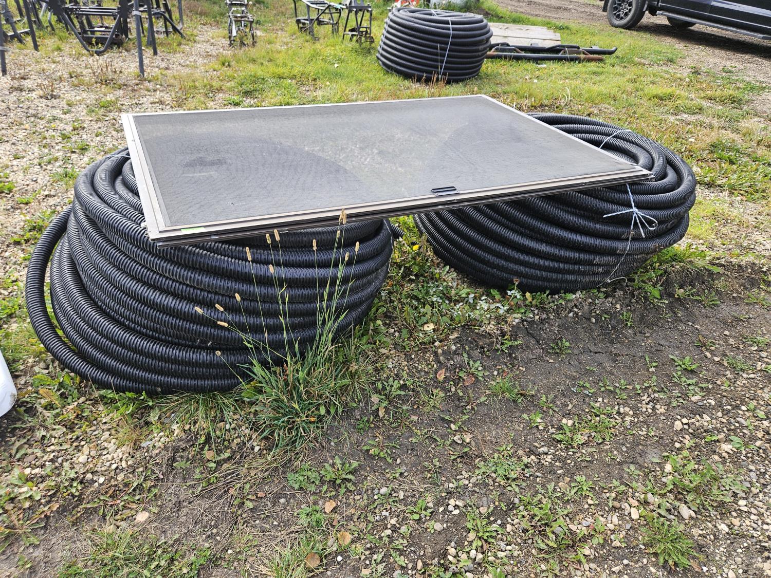 5366 (2) Rolls of 2 Inch Plastic Drainage Hose & (2) 49 Inch X 78 Inch Screen Doors