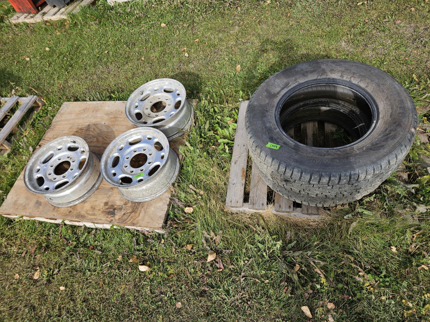 5385 (3) 8 Bolt 16 Inch Rims & (2) 225/75R16 Nokian Studded Tires