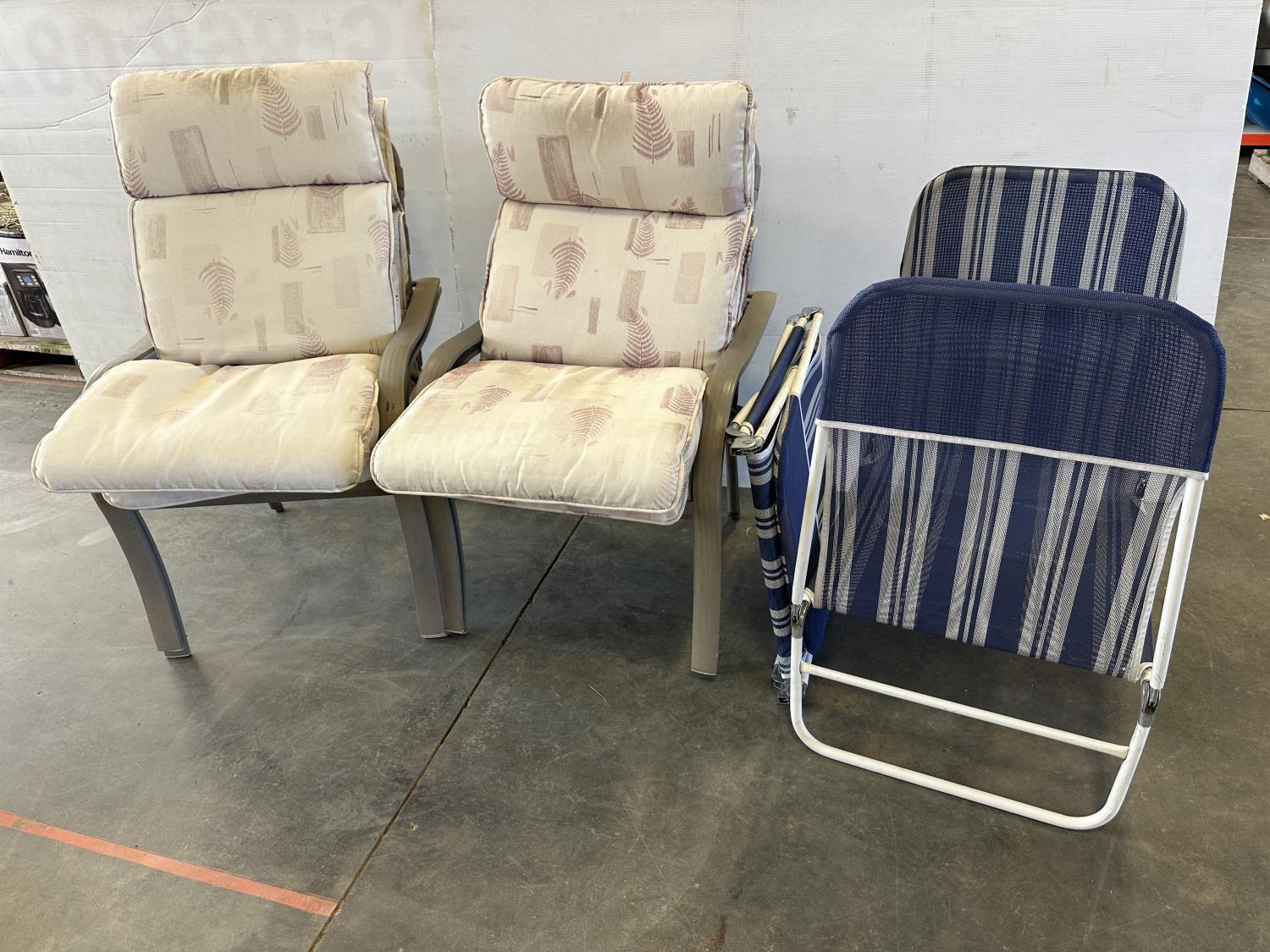 5177 (4) Patio Chairs with Cushions and (2) Folding Lounge Chairs